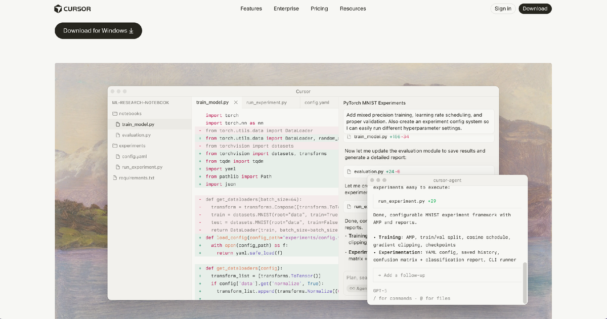 Редактор анализирует контекст всего проекта и предлагает не только завершение строк, но и многострочные изменения с учетом последних правок. Среда разработки понимает структуру кода, выявляет ошибки и предлагает оптимизированные решения.