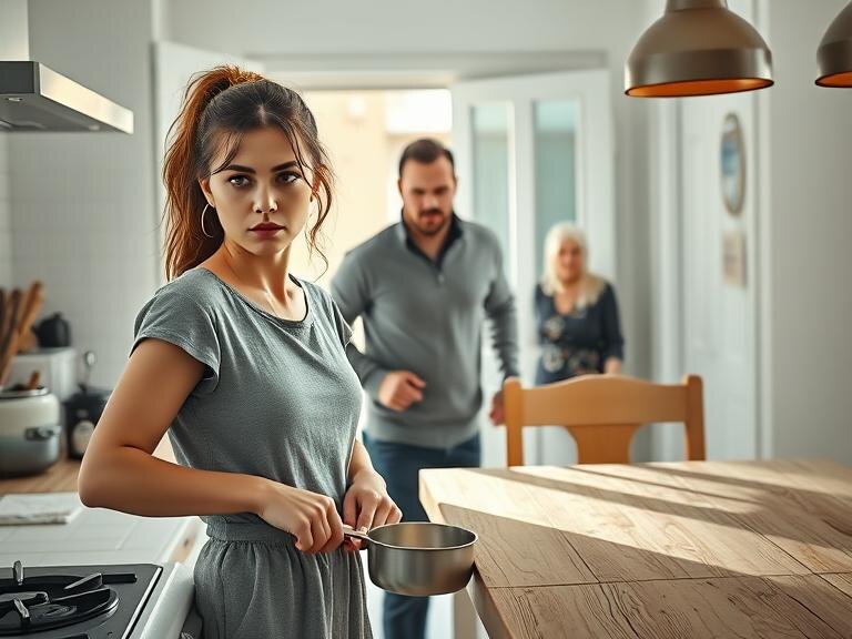 Виктория даже не сразу ответила — просто стояла у плиты, держа половник в руке, будто это щит. В нос бил запах поджаривающегося лука, где-то на фоне тикали часы, и каждый их щелчок раздражающе напоминал: момент, когда все треснуло, уже наступил.