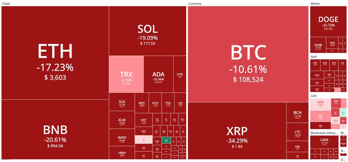 За последние 24 часа было ликвидировано более 7 миллиардов долларов после решения Трампа ввести 100%-ный тариф для Китая