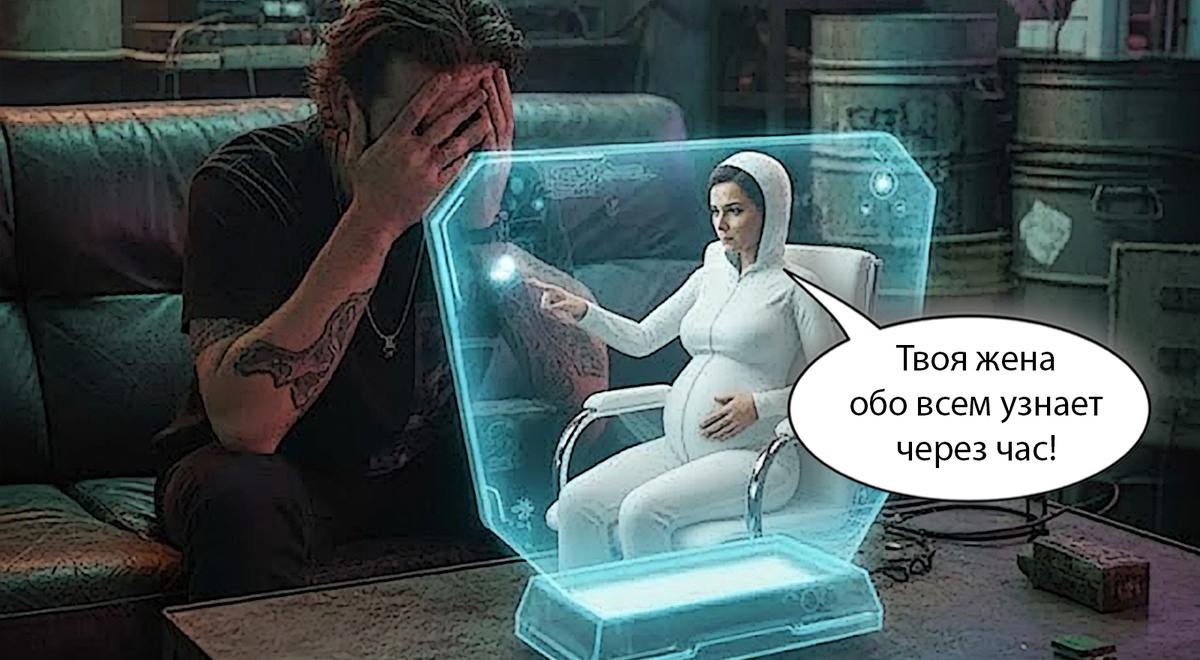 Вася кинул голофон на стол и махнул рукой, ткнув в воздух. Голограмма Ланы материализовалась над столом – она сидела на каком-то кресле, явно в медицинском учреждении, в белом одеянии, типичном для посетителей женского отделения. Чуть-чуть пополневшая, с объемным животом, будто воздушный шар. Её глаза, те самые, что девять месяцев назад шептали "Давай, Вась, ещё один круг по Екатеринбургу, никто не узнает", теперь горели смесью ярости и усталости.