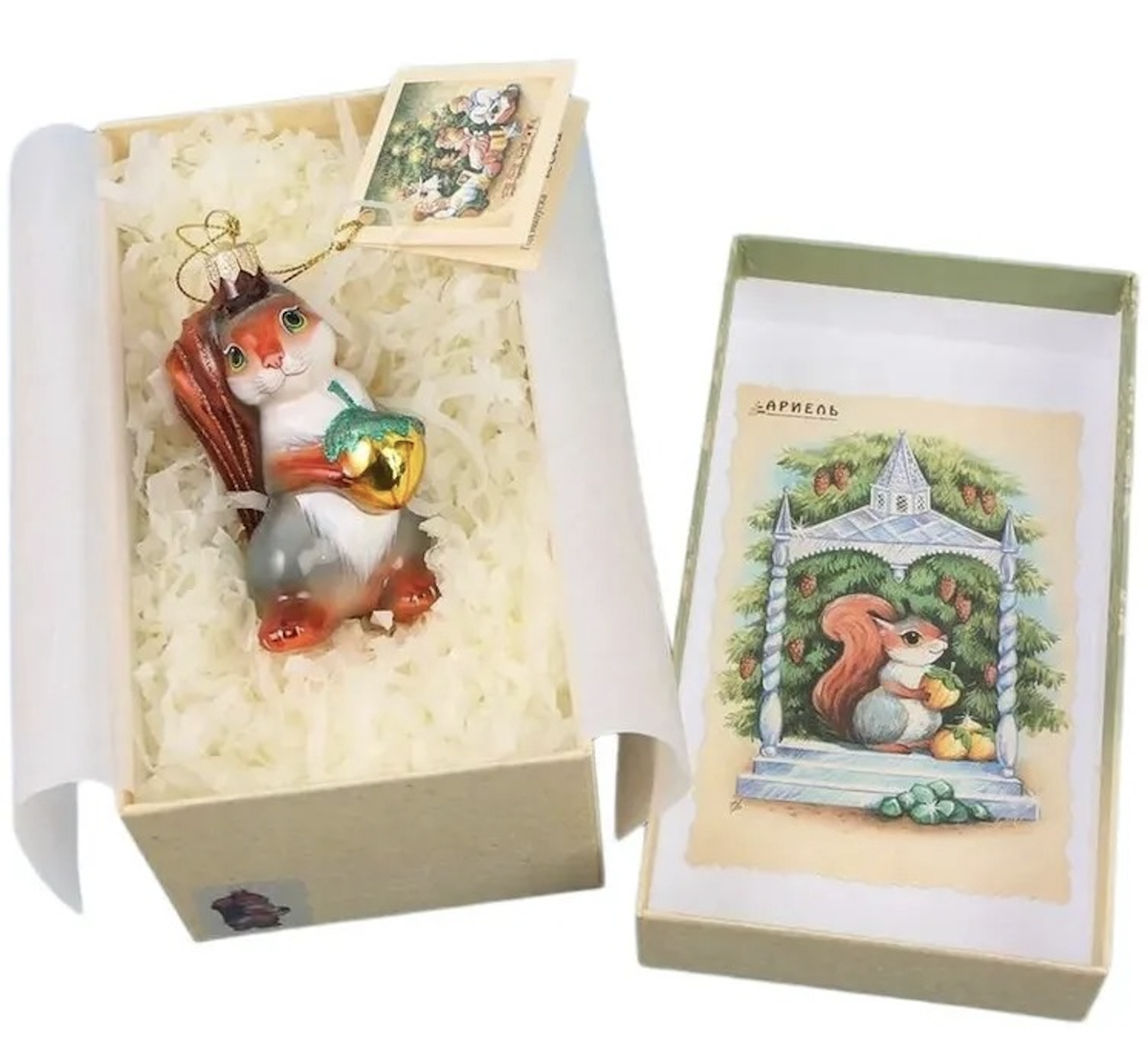 Когда смотришь на стеклянные игрушки, хочется, чтобы каждая из них была живой и запоминающейся. Эта стеклянная Белочка от Ариель — именно такая! Маленькая, яркая, с орехом в руках, она олицетворяет тепло лесного праздника и волшебство зимы. Каждая Белочка создаётся полностью вручную: стеклодувы формируют фигурку, а художники добавляют яркие детали и золотые акценты. Посмотрите, как сияет Белочка с орехом в руках!