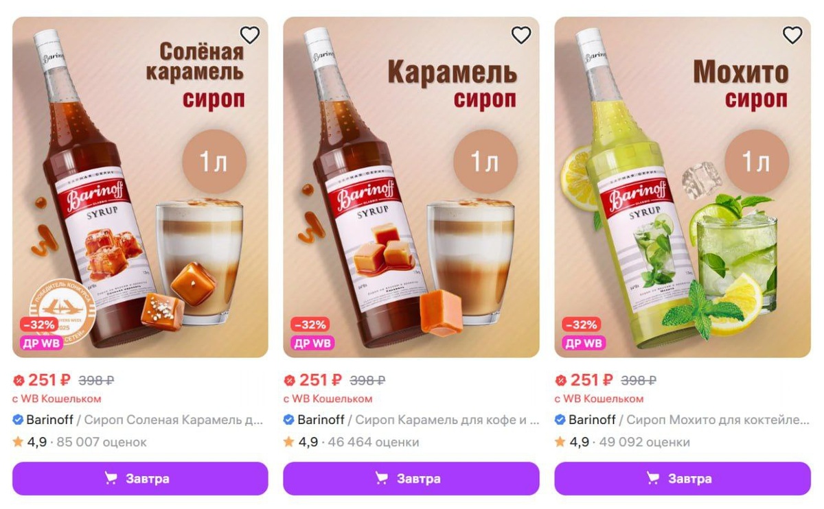 Сиропы Barinoff, 1л https://www.wildberries.ru/seller/41159
