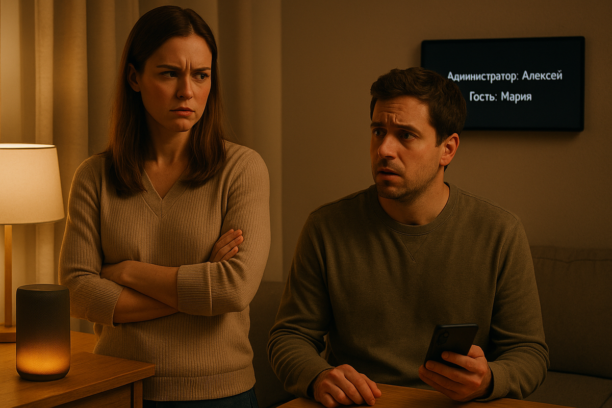 Я подошёл, открыл приложение — действительно, там было два профиля: «Администратор: Алексей» и «Гость: Мария». Всё выглядело официально — с датой создания и отметкой «автоматическое распределение ролей». Жена хмыкнула: “То есть я теперь гость в собственном доме?”