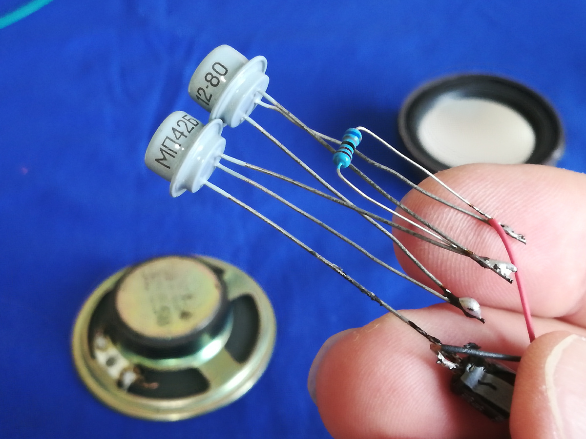 Для создания этой СХЕМЫ надо всего пару транзисторов, динамик, резистор и парочка конденсаторов.