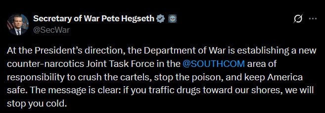 'Will stop you cold if traffic drugs' — Hegseth