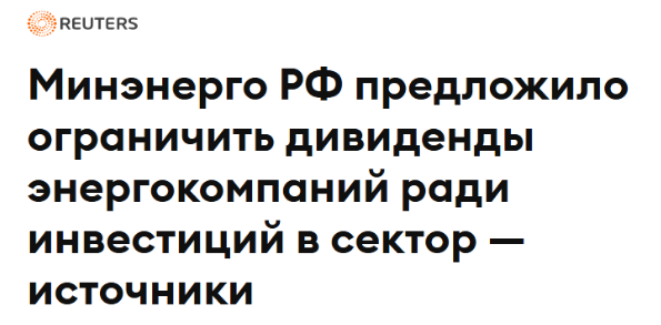 Читаю новости на выходных, и и попадается очень негативная статья, про энергетический сектор РФ. Если коротко, говорить по этой статье то, Минэнерго подготовило законопроект "О содействии инфраструктурному развитию и повышению эффективности управления в сфере электроэнергетики", которым предлагается внести поправки в части принципа выплаты дивидендов в закон об Акционерных обществах для субъектов электроэнергетики (такими субъектами являются все энергокомпании РФ, занимающиеся производством, передачей и сбытом электроэнергии). Изменения эти звучат так, цитирую, как это приводит СМИ: Для таких компаний предложено при принятии решений об источнике выплаты дивидендов отдавать предпочтение тратам на инвестиции в случае, если капвложения включены в инвестпрограмму, а годовые капзатраты превышают или равны прибыли на момент обсуждения дивидендных выплат. Это можно понять следующим образом: при распределении прибыли компании имеют право не выплачивать дивиденды, в том случае если их капзатра