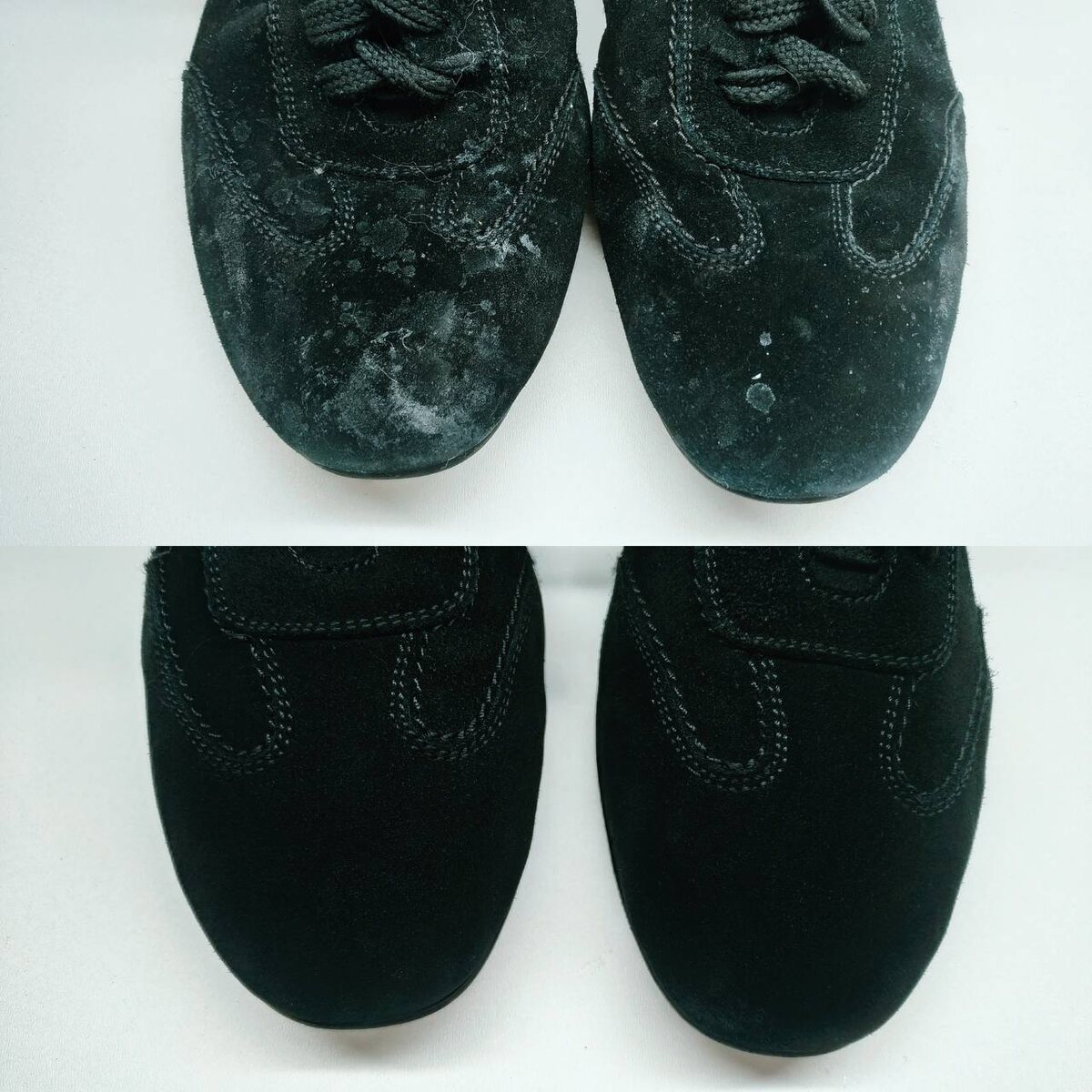 Да, я беру в работу изделия из замши и нубука, но в очень редких случаях. В основном это просто химическая чистка и покрытие гидрофобом, покраска в основном черных, коричневых и серых изделий, так как анилиновые красители очень тяжело смешать между собой, чтобы получить нужный оттенок.