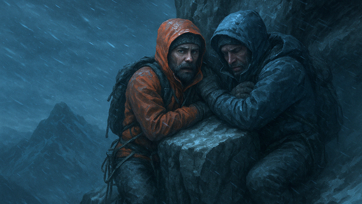 Два любителя горных восхождений застряли на высоте 285 метров. Добраться до вершины им помешали усталость, дождь и темнота.