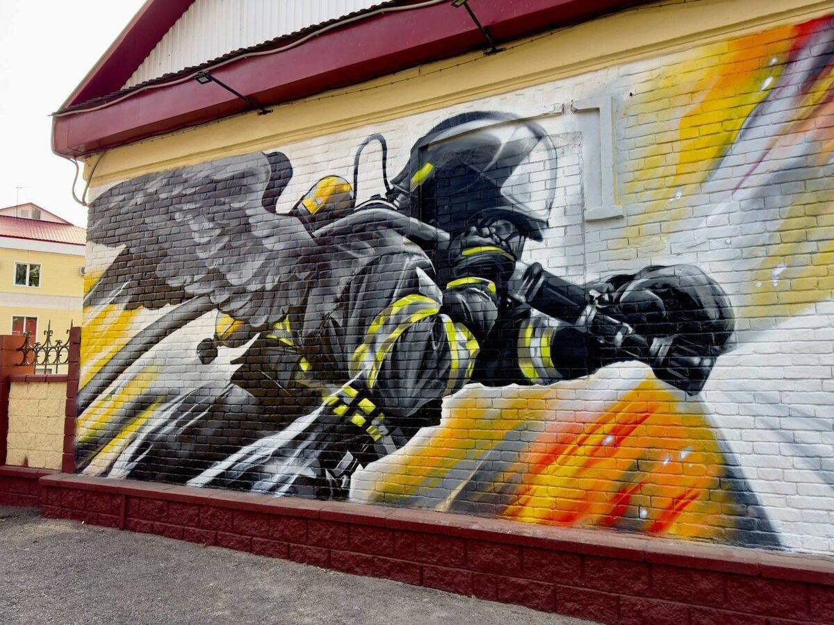 ❤️Сотрудник 22 пожарно-спасательного отряда Альберт Юлдашев на стене пожарной части г.Уфы создал мурал «Прожить одну жизнь, спасти тысячи».