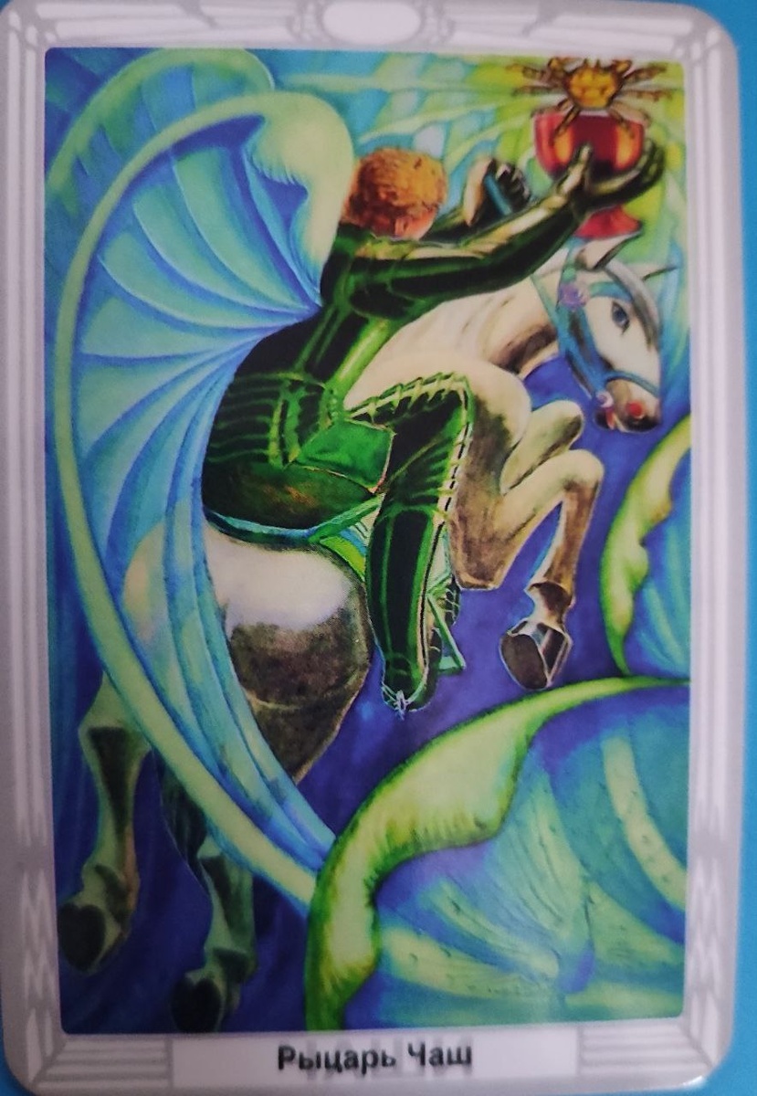 Милый Козерог, а давай разберём теперь твою карту дня Рыцарь Чаш так, как будто мы с тобой болтаем за кофе. Это не про сложные эзотерические термины, а про нашу жизнь. Кто такой этот Рыцарь Чаш? Представь себе не просто воина, а чародея, вдохновленного поэта или романтика, который скачет по волнам. Он держит в руках кубок, а из него выползает... краб. Звучит странно, но в этом и есть весь смысл! В колоде Тота этот Рыцарь — это глубокая, мощная, но часто скрытая эмоция. Он как айсберг: на поверхности — спокойная вода, а в глубине — целый мир страстей, интуиции и тайных желаний. Это не просто милый парень с цветами, это посланник из мира чувств, который может нести и светлую любовь, и одержимость, и творческое безумие. Его девиз: «Я чувствую — следовательно, я существую». Но чувствую так сильно, что иногда это меняет реальность вокруг. Что это значит для тебя, мой милый Козерог? А вот тут начинается самое интересное! Твоя козерожья натура — это целеустремленность, практичность, дисциплин