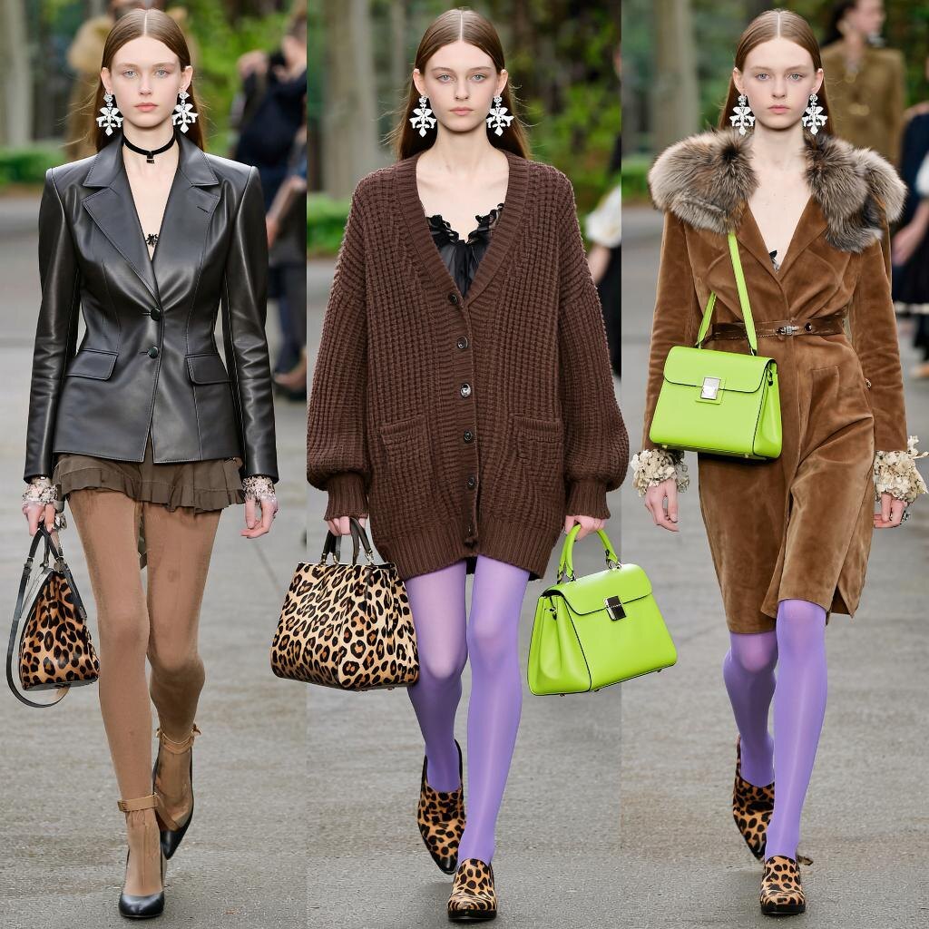 Осень 2025 года приносит смелые сочетания практичности и индивидуальности. Вот ключевые тренды сезона: 1. Цветовая палитра Доминирует коричневый в комбинациях с бордовым и жёлтым, особенно в коллекциях Gucci. Чтобы избежать мрачности, дизайнеры добавляют яркие акценты: салатовые сумки, сиреневые колготки и зелёные детали . 2. Аксессуары В тренде массивные серьги с геометрическими формами, силуэтами лиц, насекомых или цветов. Особое внимание — многослойности украшений и контрастным сочетаниям . 3. Стилевые направления - «Уставшая англичанка»: объёмные вязаные свитера, оверсайз-кардиганы и водолазки в природных оттенках . - Готика и будуарность: приталенные кожаные жакеты с подчёркнутыми плечами, сочетание строгости с романтичными деталями . - Леопардовый принт: используется в верхней одежде и аксессуарах для создания акцента . 4. Материалы и детали Популярны замша, меховая отделка, ремни как декоративный элеме