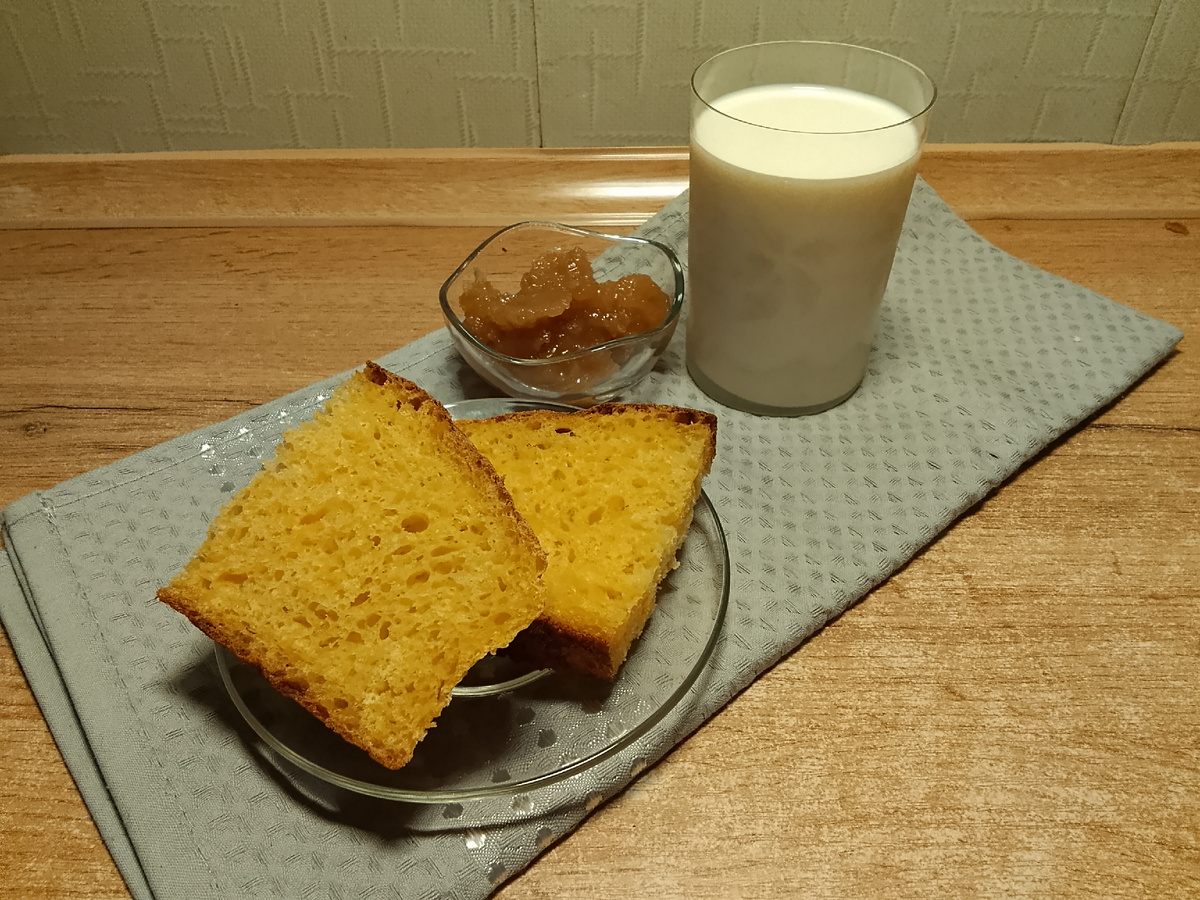 Тыква, поистине, осенний овощ. Тыкву можно назвать продуктом здорового питания. Ее полезные свойства связаны с большим содержанием пищевых волокон, антиоксидантов, витаминов, минералов и белка, почти отсутствием жира и крахмала. В тыкве очень много витамина А и каротина, есть витамин С. В тыкве содержаться почти все витамины группы B, что делает ее полезной для кожи, глаз и сердечно-сосудистой системы. Из тыквы можно приготовить суп-пюре, тыкву можно просто запечь, как сладкое, так и не сладкое блюдо, из тыквы можно приготовить сок, тыквенное пюре можно добавлять в различную выпечку, с тыквенным пюре получается очень вкусная заправка для салатов, не сладких каш или макарон. Ну а про вкусные тыквенные семечки знают все! Я буду печь хлеб с добавлением тыквенного пюре. Домашние считают что тыквенный хлеб, по вкусу, очень похож на куличи. Тыкву очистите от семечек, нарежьте дольками и выложите в форму. Запекайте тыкву до мягкости в духовке при 180-200гр. Отделите тыквенную мякоть от корки.
