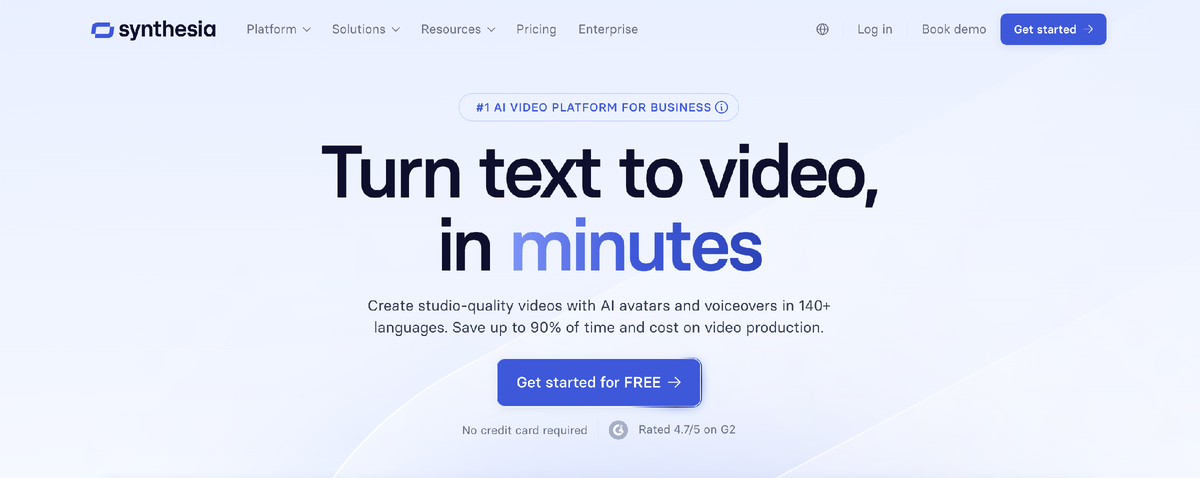 Откройте synthesia.io и нажмите кнопку "Get Started" на главной странице.