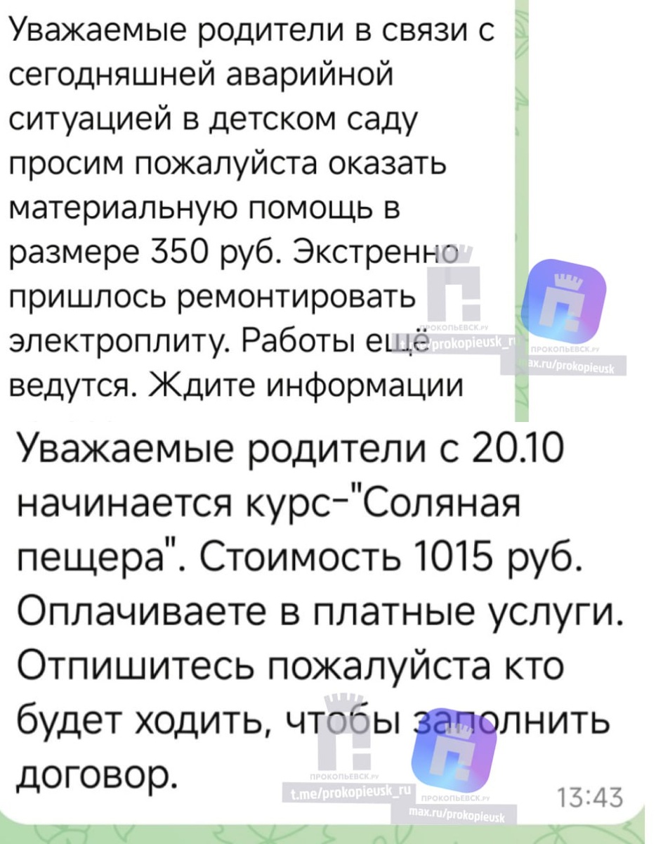 🗣❓❓❓Беспредел в детском саду 35 "Белоснежка", мало того что произошло ЧП, после которого просят оказать материальную помощь, так еще и соляная комната стала платной, хотя всех детей должны оздоравливать бесплатно.