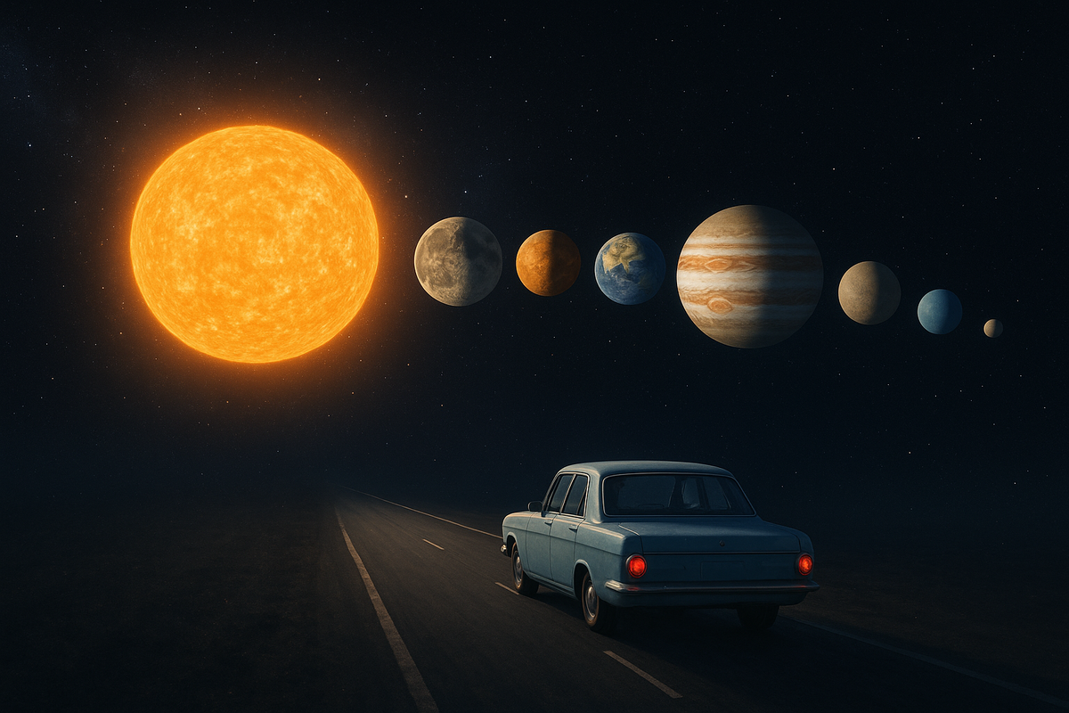 Допустим, ты сел в машину, включил круиз на 100 км/ч и решил поехать — не в соседний город, а… в космос. Вот сколько бы это заняло 👇 🌕 Луна — 384 000 км ➡️ ~160 дней пути. Да, меньше полугода — и ты уже рядом с кратерами 🚀 ☀️ Солнце — 150 млн км ➡️ ~171 год дороги. Сменятся поколения — а ты всё ещё жмёшь на газ и мажешь крем от загара 😎 🔴 Марс — 225 млн км ➡️ ~257 лет дороги. Доедешь — уже сам станешь археологической находкой 👽 ⚡️ Юпитер — 780 млн км ➡️ ~890 лет. 💍 Сатурн — 1,4 млрд км ➡️ ~1600 лет. 🧊 Уран — 2,9 млрд км ➡️ ~3300 лет. 🌊 Нептун — 4,5 млрд км ➡️ ~5100 лет. ❄️ Плутон — 5,9 млрд км ➡️ ~6700 лет пути. ⸻ 💬 Ирония в том, что наша скорость привычна для Земли, но в масштабе Вселенной — мы почти стоим на месте. Пока ты читаешь этот пост, Солнце уже пролетело 800 км в галактике. Так что, может, и не стоит спешить — Вселенная всё равно впереди 🌌 Подписывайся на канал, если было интересно! #космос #наука #познавательное #интересное
