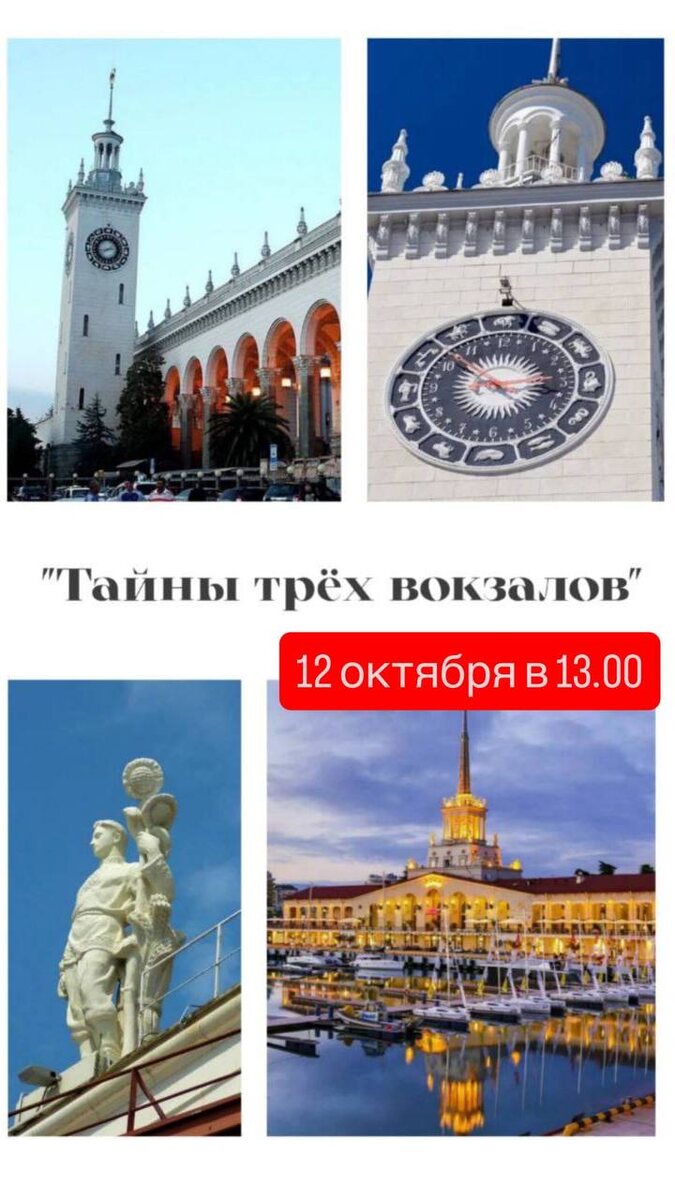 Вангую! В воскресенье после обеда циклон с дождями нас покинет и мы пойдем на экскурсию «Тайны трех вокзалов». Та самая экскурсия, которая по названию скорее вызывает отторжение: какие тайны на вокзалах? Вокзал - это много людей, суета и туда точно не хочется. Но не в случае с Сочи. Наши порталы строили лучшие архитекторы СССР и не поскупились на детали и символы. Ведь перед ними стояла задача: «поражать воображение трудящихся». Прошло больше 70 лет и мы до сих пор поражаемся. 12 октября в 13.00 приглашаю на экскурсию «Тайны трех вокзалов. Продолжительность 2 часа Стоимость 1.500 рублей Бронирование мест в WhatsApp +79882332270
