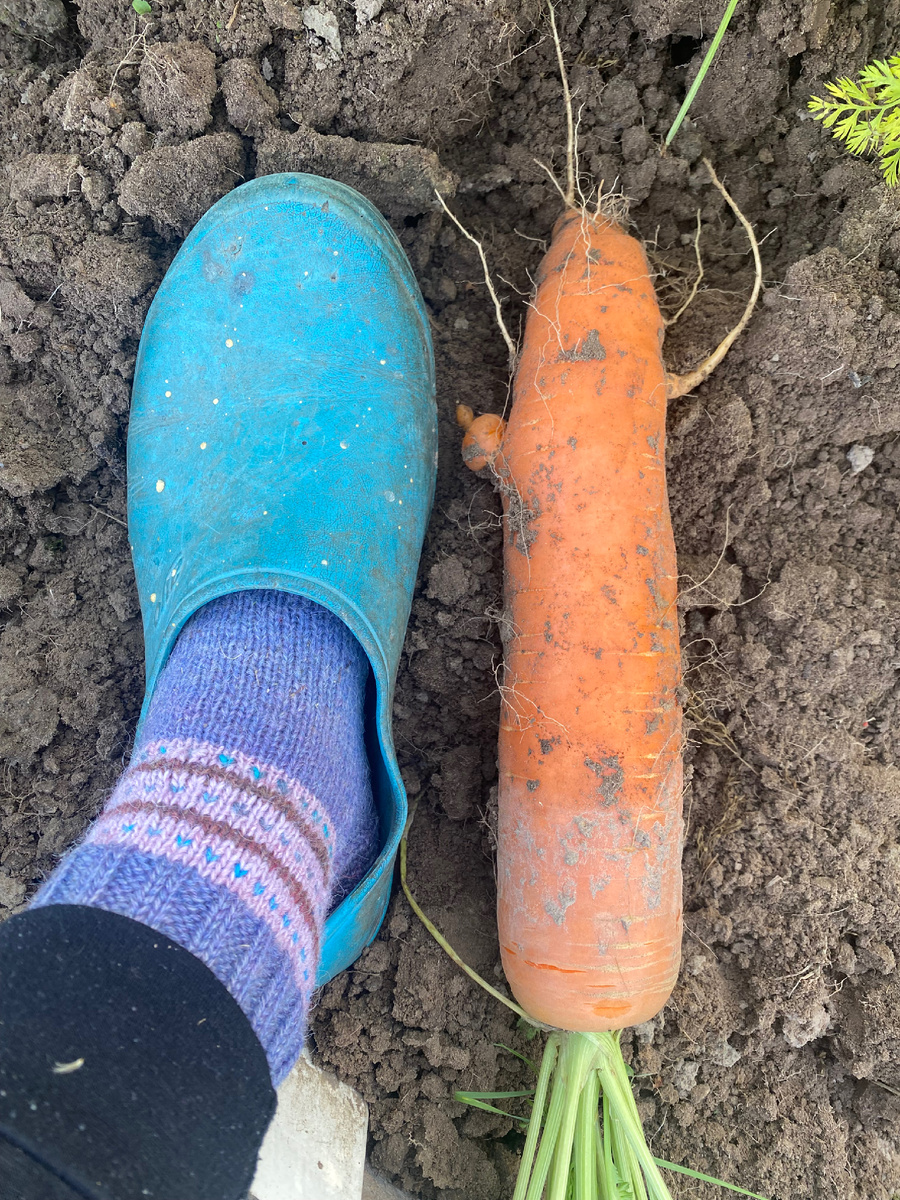 На первом фото снова гигантизЬм))) галоши 40 размера, морковина по длине больше галоши, толщина корнеплода также впечатляет. Пока не взвесила эту кобылу рыжую)))
