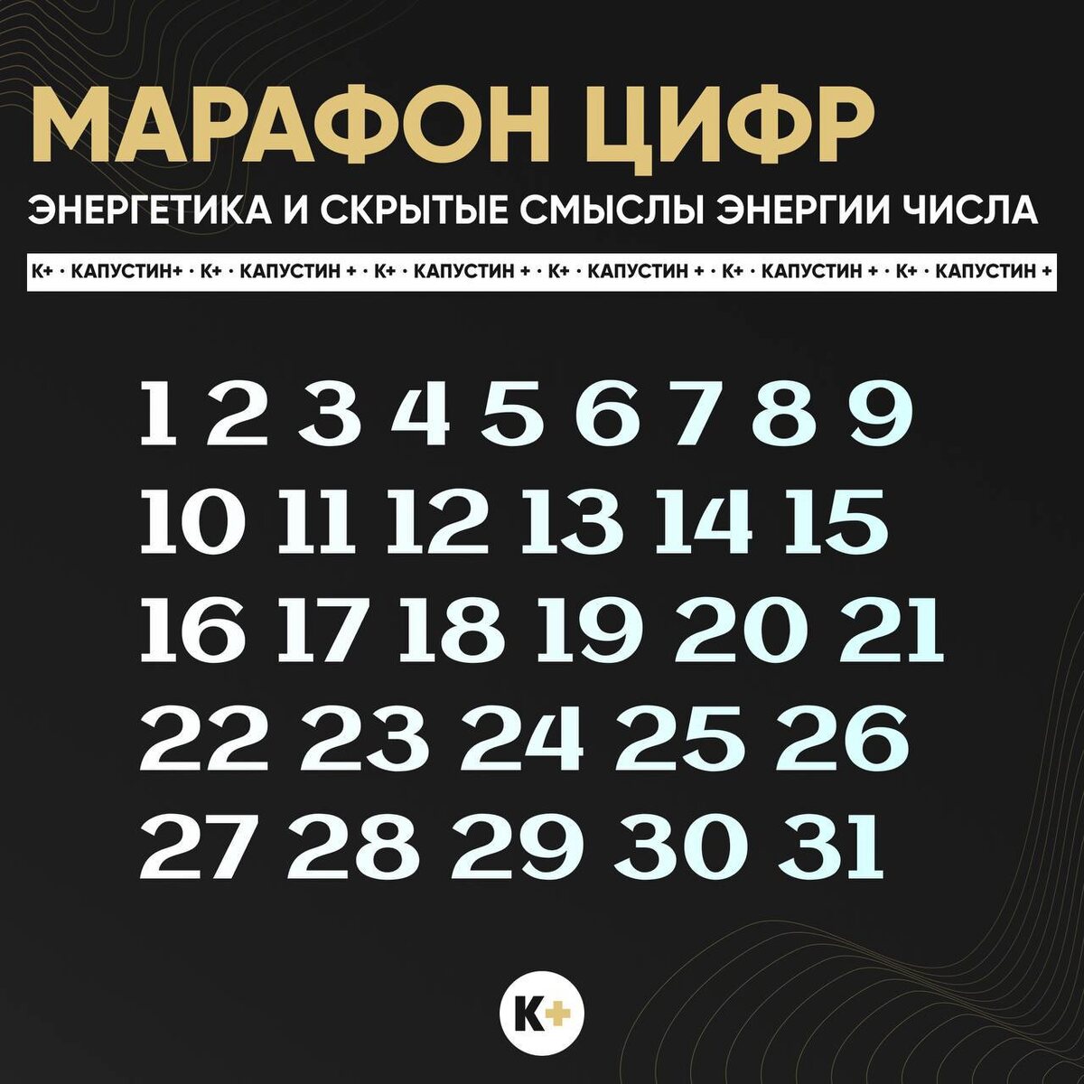 🚀 МАРАФОН ЦИФР KEYTO – ПРИСОЕДИНЯЙСЯ Друзья, в октябре мы запустили наш первый нумерологический МАРАФОН ЦИФР 🔥 🔍 ГДЕ: в закрытом канале К+ | Капустин+ ⌛️ КОГДА: весь октябрь, с 1 по 31 число. МАРАФОН ЦИФР – это ежедневное погружение в магию чисел, которые управляют нашей судьбой. Каждый день – новая цифра, новая энергия, новая подсказка, которая поможет вам понять себя и изменить свою жизнь! 📌 За 31 день нашего марафона вы: • Узнаете секреты каждой цифры, которая вас окружает. • Раскроете свои скрытые потенциалы и новые возможности. • Получите практические рекомендации и лайфхаки соотвествующие вашему дню рождения. • Погрузитесь в удивительный мир Цифровой Психологии и почувствуете энергию чисел! ❣️Наш марафон для тех, кто: - Всё время чувствует, что застрял. - Не знает, с чего начать или как двигаться дальше. - Недоволен своими отношениями либо финансовым положением. - Часто болеет без причин (психосоматика). ⏰ ВНИМАНИЕ! Весь октябрь – каждый день будет посвящён отдельной