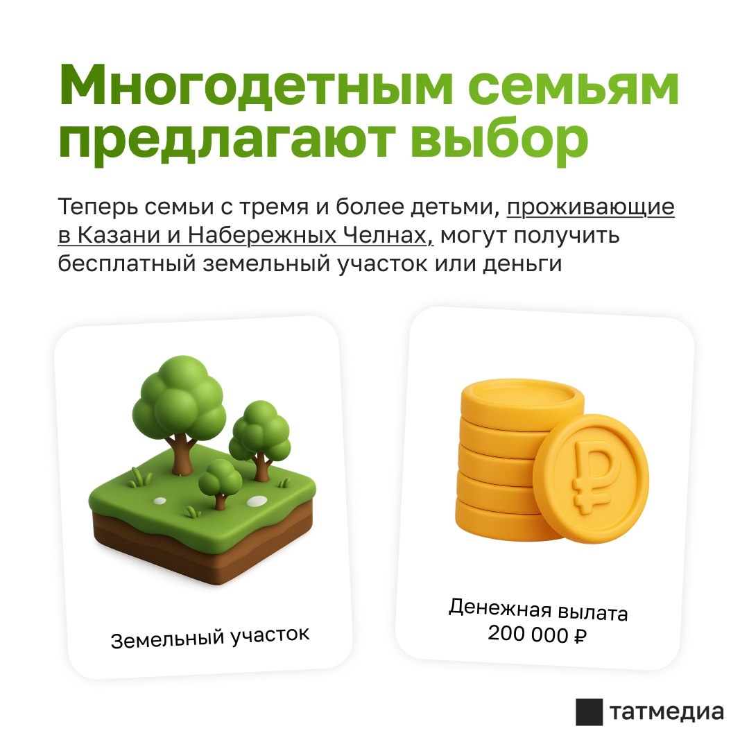 🏠💰Татарстан расширяет меры поддержки многодетных семей: участок или денежная компенсация