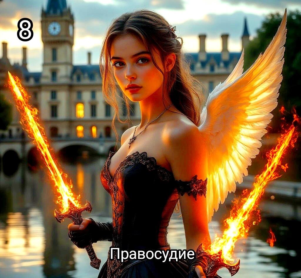 Карта Правосудия в мире Таро открывает перед нами перспективу праведности, опять же выбор в пользу Божественной Любви, равновесия кармической справедливости, осознанности в соблюдении законов, как Божественных, так и уважение к универсальным законам морали и этики, через гармонизацию действий и стремлении к жизненному балансу... Это было раньше, а сейчас вместо весов появился второй меч - наступил момент бумеранга Кармической справедливости из-за нарушений ИНТЕГРИТЕТА по всем сферам жизни, по всем слоям присутствия во снах Сознаний( Томас, раджас и сатва). Карта Правосудие даёт понять, что пора гармонизировать свой внутренний мир, а в следствии этого придёт к равновесию и гармонии и мир внешний.