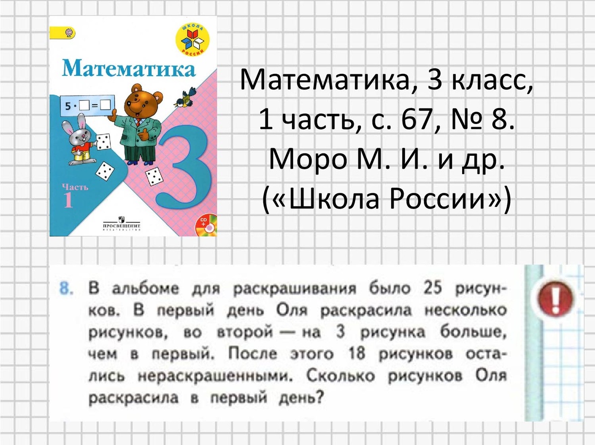 Решаем задачу: математика, 3 класс, «Школа России» (Моро), часть 1, с 67, № 8