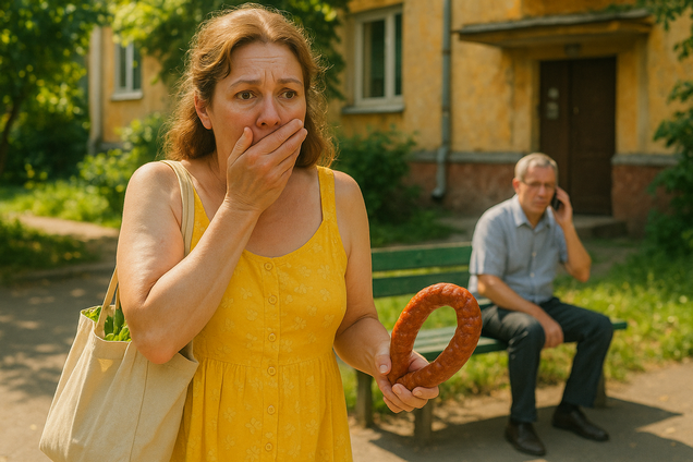 Арина замерла посреди двора, зажав рот ладонью. Сумка с продуктами оттягивала плечо, а в другой руке держала палку Краковской колбасы.