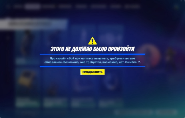Fortnite для меня — это не просто игра, а способ отдохнуть после работы. Но однажды всё пошло не по плану. Я запустил игру, как обычно, и через пару секунд на экране появилась надпись: «Ошибка 7».