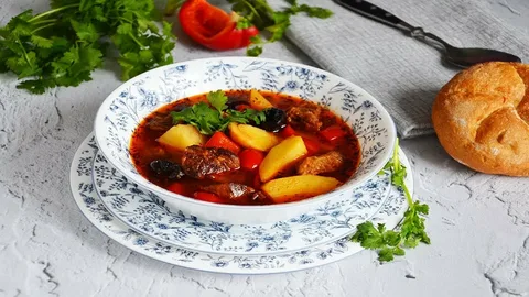 Бозбаши - очень вкусный грузинский густой овощной суп с бараниной. Благодаря добавлению большого количества овощей и специй, суп отличается густотой и ярким вкусом. Ингредиенты: Рецепт приготовления