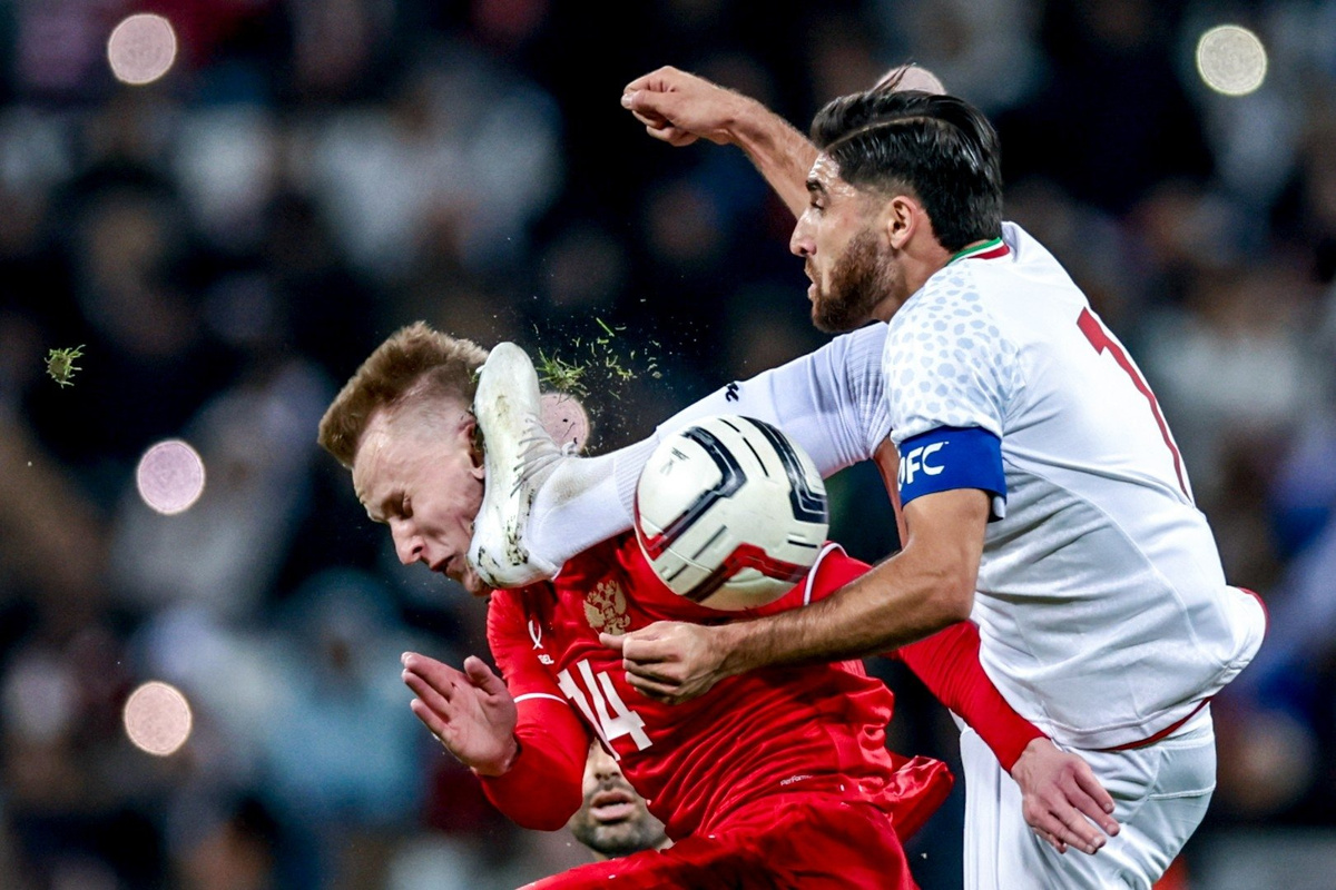 Очевидно, что это серьезная ошибка арбитра, потому что игрок сборной Ирана в прыжке открытыми шипами попадает в голову Мелехину. Тут не может быть никакого решения, кроме как штрафного удара и красной карточки, потому что данные действия могут нанести серьезную травму футболисту. Шипами был нанесен удар в голову. Шипы в прыжке на приличной скорости – как оружие.