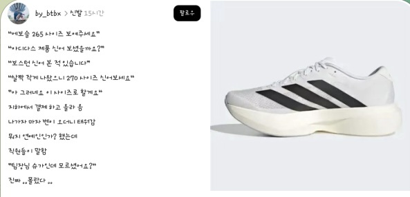 По словам ОР(оригинальный рассказчик) 10 октября он работал в обувном магазине, когда туда зашёл покупатель, который, как позже выяснилось, был знаменитостью. Покупатель пришёл за кроссовками, хотя, по его словам, изначально не планировал ничего покупать. 🐈: Пожалуйста, покажите мне EVO SL (модель Adidas) в размере 265. ОР: Вы пробовали продукцию марки Adidas? 🐈: Да. Я уже носил Boston (модель Adidas). ОР: В этой серии они немного маломерят, попробуйте размер 270. 🐈: О, вы правы, я, пожалуй, возьму этот размер. Он расплатился, после чего его забрала машина. ОР заинтересовался, не знаменитость ли это, и тогда другой сотрудник сказал ему, что это действительно был Мин Юнги.