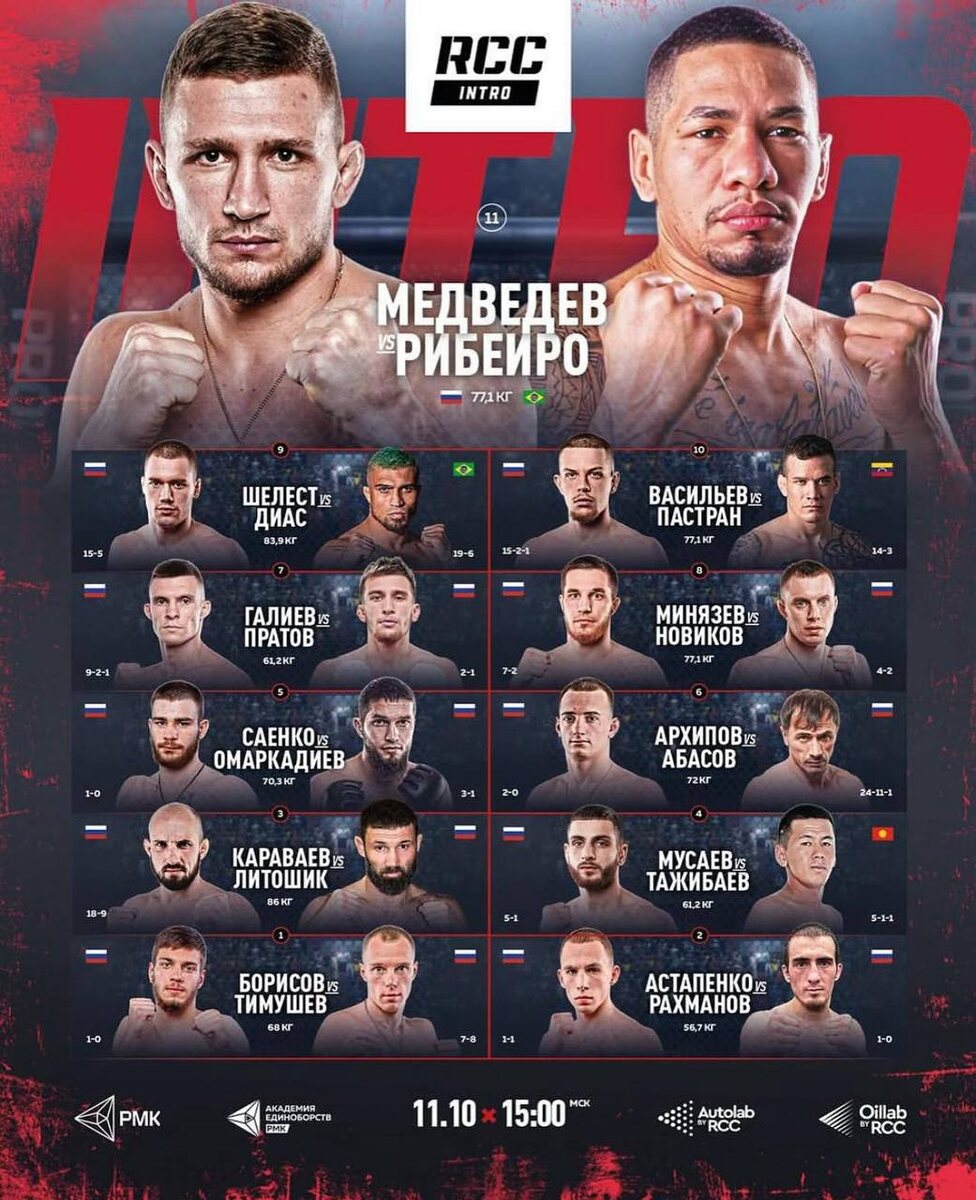 📹 Прямой эфир RCC INTRO 37: Медведев vs Рибейро. Сегодня! Начало прямого эфира в 15:00 по Москве! Где смотреть ❓⬇ ™️В нашей группе ВКонтакте - vk.com/wall-180162102_263398 Видеосервис Wink - wink.ru/tv/udar Кинопоиск - hd.kinopoisk.ru/channels?c... Билайн ТВ - beeline.tv/ НТВ-ПЛЮС - ntvplus.tv/channel/udar-681 🇺🇿 Телеканал UDAR в Узбекистане TelecomTV - telecomtv.uz 🇧🇾 Телеканал UDAR в Республике Беларусь KOT TV - www.kottv.by/ 🇧🇾 Телеканал UDAR в Республике Беларусь T1-Групп - t1group.by/ 🇰🇿 Телеканал UDAR в Казахстане - Кинопоиск подписка Яндекс Плюс - раздел спорт hd.kinopoisk.ru/sport/ 🇰🇿 Телеканал UDAR в Казахстане Alma TV- www.almatv.kz/tarify/ 🇰🇬 Телеканал UDAR в Киргизии MEGA TV - megacomtv.kg/ 🇰🇬 Телеканал UDAR в Киргизии O! TV - otv.kg/channel/64... 🇦🇲 Телеканал UDAR в Армении - wink.am/tv