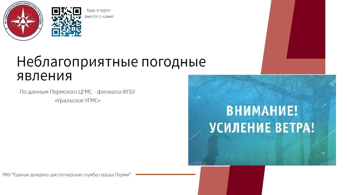 🆎🆎🆎🆎🆎🆎 местами по Пермскому краю ожидаются порывы ветра до 17 м/с. ⚠️В связи с прохождением прогнозируемых неблагоприятных погодных явлений возможны обрывы линий электропередач, аварии на системах ЖКХ, заторы и увеличение дорожно-транспортных происшествий на дорогах. ✅Рекомендуем: 🔹 Избегать нахождение вблизи деревьев, рядом с линиями электропередач, широкоформатными и слабо закрепленными конструкциями; 🔹 При авариях на сетях электроснабжения необходимо обесточить все электроприборы, соблюдать требования пожарной безопасности; 🔹Водителям - соблюдать скоростной режим и дистанцию, избегать резких маневров и торможений. Движение осуществлять с учетом дорожного покрытия; ☎️Телефон вызова служб экстренного реагирования: «01» - со стационарного телефона, «101», «112» - с мобильного телефона, вызов бесплатный.
