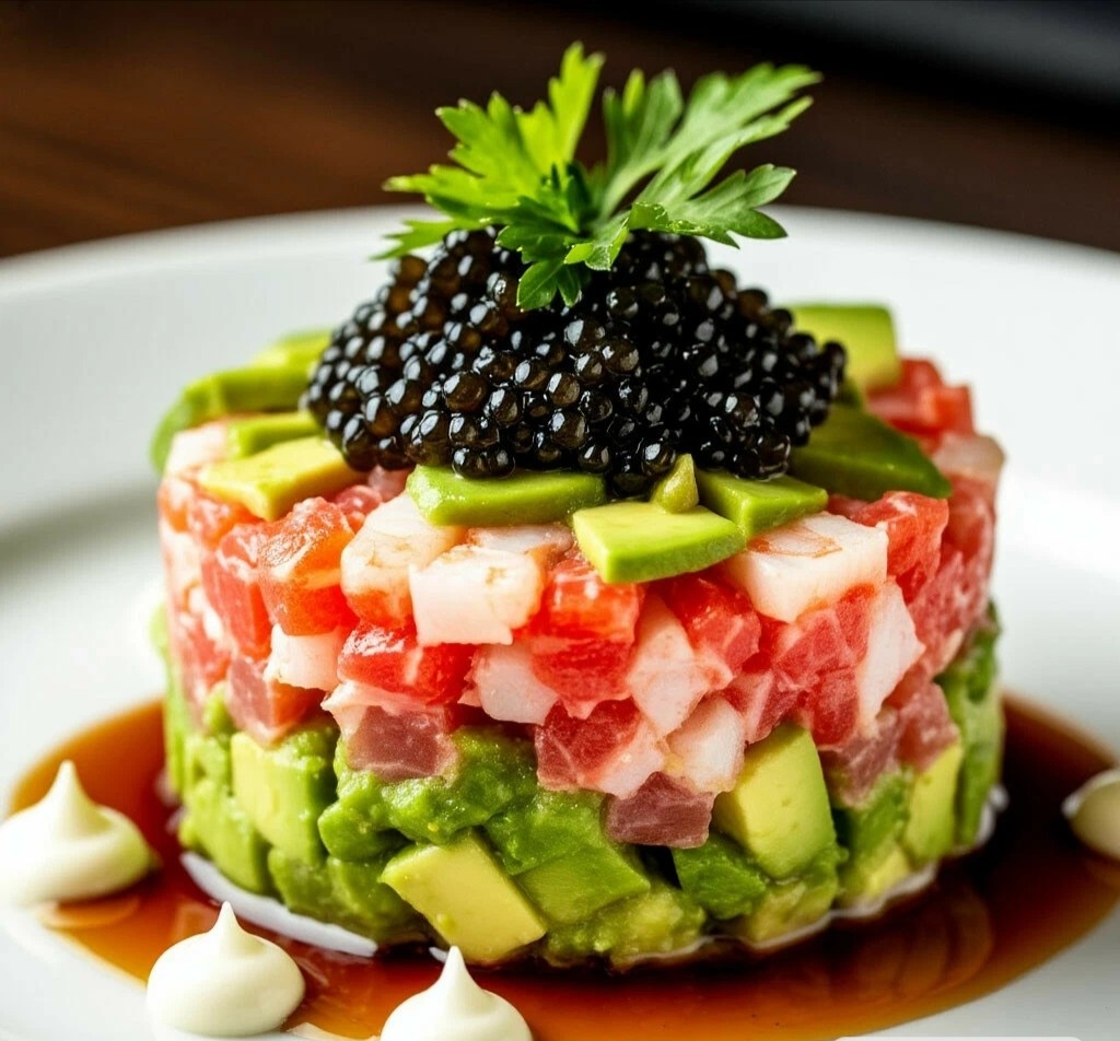 СУББОТНИЙ ОБЕД. ЗАКУСКА — ТАРТАР ИЗ КРАБОВЫХ ПАЛОЧЕК С АВОКАДО И ЧЕРНОЙ ИКРОЙ ПАЛТУСА Мяу, мои ценители изысканного! 😺 Готовы к кулинарной магии? Сегодня мы превратим простые крабовые палочки в ресторанную закуску, от которой ваши гости придут в восторг! Название звучит сложно, но готовится проще простого. ТАРТАР ИЗ КРАБОВЫХ ПАЛОЧЕК С АВОКАДО, ЧЕРНОЙ ИКРОЙ ПАЛТУСА И ЦИТРУСОВЫМ ЭМУЛЬСИОННЫМ СОУСОМ 🥑🦀 ИНГРЕДИЕНТЫ (на 2 порции): 🧾 · Крабовые палочки – 200 г (охлажденные, качественные) · Авокадо – 1 шт. (спелое, но упругое) · Черная икра палтуса – 2-3 ч.л. (для сервировки) · Лимон/лайм – 1 шт. (сок и цедра) · Микрозелень или листья кинзы/укропа – для украшения · Сливочный сыр – 2 ст.л. (для стабилизации "тартара") · Оливковое масло – 3 ст.л. · Сок лимона/лайма – 1 ст.л. · Соевый соус – 1 ч.л. · Мед – ½ ч.л. · Дижонская горчица – ½ ч.л. ВРЕМЯ ПРИГОТОВЛЕНИЯ: ⏰ 20 минут СЛОЖНОСТЬ:🐾 Нужна сноровка ПОШАГОВЫЙ РЕЦЕПТ: 👩🍳 ШАГ 1: Подготовка основы тартара 1. Крабовые палочки НЕ размо