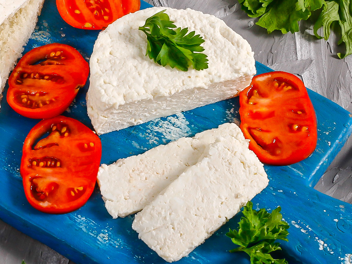 Через два часа у нас плотный, упругий сыр. Без ферментов, без яиц, без кислоты – из обычных продуктов. Нарезаем ломтиками и подаём с хлебом, овощами или просто так.
