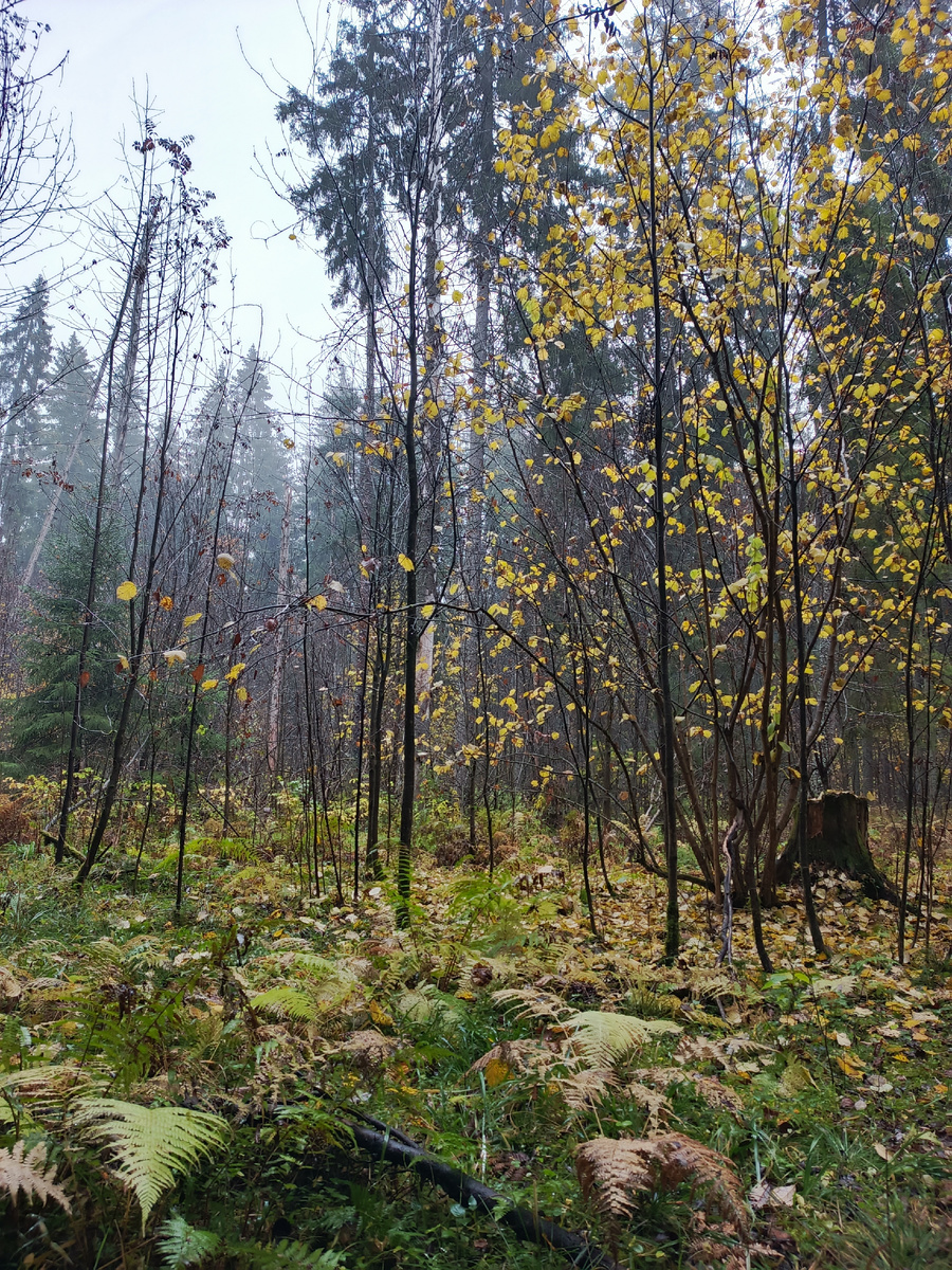 Сегодня у Татьяны в дождливый серый день самая удачная прогулка за грибами! Их было так мало после солнечной сухой погоды начала месяца, что не нужно перебирать их, варить, солить или мариновать! Ведь Октябрь, возлюбленный Татьяны, подарил ей сегодня так много вдохновения! И можно отправить грибы размножаться в саду под яблоней или туей и достать свое волшебное перо! В такое нежное туманное утро с каплями то ли росы, то ли дождя, то ли мечтательных слёз ей хотелось запомнить эту нежность переходной поры природы от фейерверка красок к полутонам межсезонья.. Последние всполохи ускользающей красоты дарили сияющие , как цветы, разноцветные листья.. Дубы, клёны, орешник, черноплодная рябина и даже пробравшийся в лес конский каштан! Но как настоящие диковинные цветы посреди пожухлой травы наконец- то расцвели папоротники! А кто- то говорил, что папоротники не цветут.. Но их яркие золотисто - бежевые перья, как хвосты диковинных жар- птиц раскрасили увядающий подлесок.. Папоротники , зн