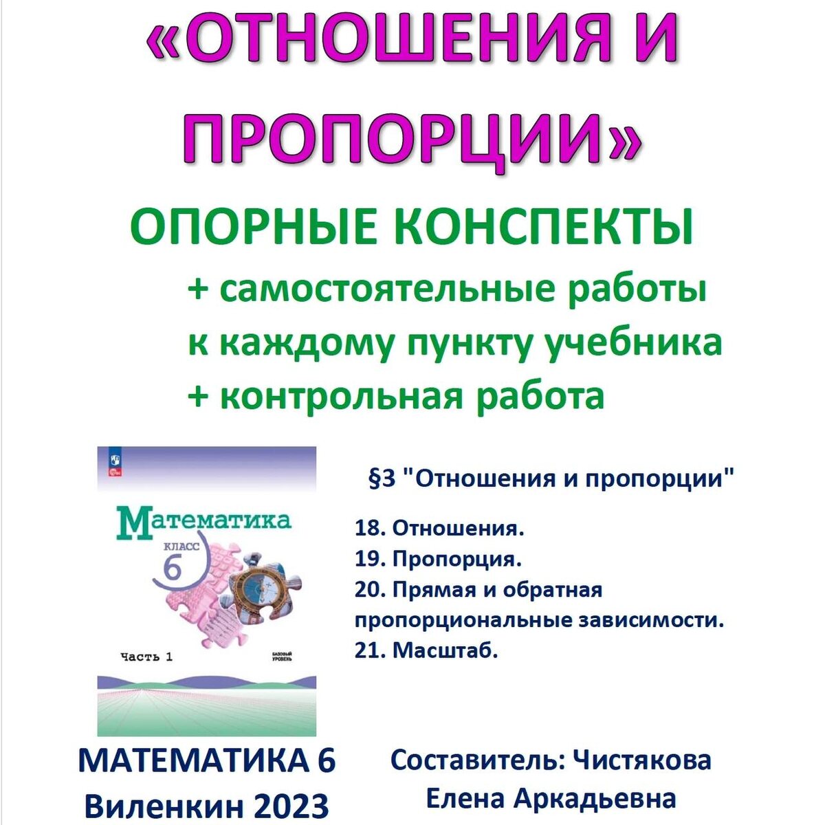 ❗Внимание❗⭐Обновление⭐ Исправлены ошибки в файле "Ответы". 🆗6 класс Опорные конспекты + Самостоятельные работы + Контрольная работа "Отношения и пропорции" Виленкин Просвещение 2023 и позже 📥Скачать на WB: digital.wildberries.ru/offer/567058 Последнее обновление 11.10.25 Содержит: 🔹 4 опорных конспекта к п.18-21 учебника "Математика 6" Виленкин 2023 и позднее; 🔹 4 самостоятельные работы с решениями; 🔹 контрольную работу по теме в 9 вариантах с полным решением. Материал скомпонован в три PDF файла: 🔹файл учителю 11 страниц; 🔹файл ответы 23 страницы; 🔹файл репетитору 12 страниц. Материал предназначен для изучения §3 "Отношения и пропорции": 18. Отношения. 19. Пропорция. 20. Прямая и обратная пропорциональные зависимости. 21. Масштаб. 📚 Все мои материалы в таблице: vk.cc/cHlmAx Открывайте вкладку с нужным вам классом.
