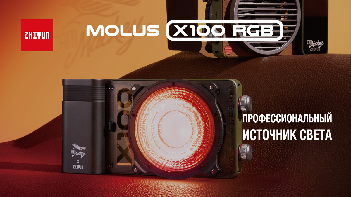 Цветной свет Zhiyun Molus X100 RGB – это сочетание мощности и компактности в новом RGB-светодиодном источнике, который обеспечит качественный высокоплотный световой поток и на съемке в студии, и на локации. Поддерживает несколько вариантов питания: от сети, пауэрбанка и от батареи. Пиковая мощность смешанного света достигает 85 Вт, диапазон температуры 2700К до 10000. На стенде № 7B1 в павильоне 2.7 посетители смогут лично ознакомиться со световыми решениями бренда.