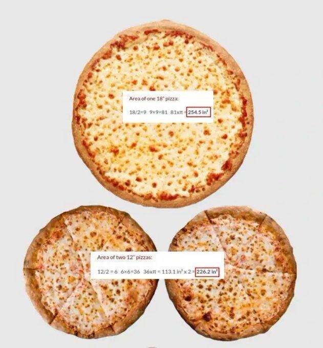 Привет, друзья! Сегодня мы поговорим о том, как математика может помочь нам сэкономить на пицце. Да-да, вы не ослышались. Оказывается, одна большая пицца выгоднее двух средних. И знаете почему? Всё дело в геометрии! Представьте себе: вы стоите перед выбором между двумя 12-дюймовыми пиццами и одной 18-дюймовой. Казалось бы, выбор очевиден — две поменьше. Но не спешите с выводами. Математики доказали, что большая пицца не только объёмнее, но и сытнее. Площадь круга растёт быстрее, чем его диаметр — спасибо Архимеду за это. Так что, выбирая между «двумя средними» и «одной большой», смело берите второе. Вы не только сэкономите деньги, но и получите больше удовольствия от трапезы. Ведь кто из нас не любит большие порции? А что вы думаете об этом открытии? Поделитесь своими мыслями в комментариях. Подписывайтесь на «The Collective», чтобы ничего не пропустить!