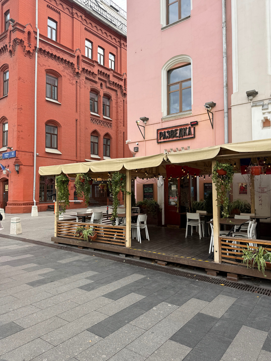 Ну что ж, Разведка боем! Без подготовки, просто почему бы и нет. Веранда уже не работает, сажусь в плотно набитый столами подвал. Кругом шпионские карты и старые фото, противогазы, рации, печатные машинки, флаги, трубы и много чего еще, что не устаешь рассматривать. В центре бар, увешанный ннаушниками и проводами. Меню по умеренным ценам (и это рядом с Кремлем), большой набор напитков. Наливки Черноплодная рябина и Перцовка. Первая насыщенная, ароматная, в меру сладкая и терпкая. 5+ Перцовка чуть не убила. Полглотка выжгли всё изнутри, вытаращили глаза, заставили часто дышать в попытке остудить горящий рот 😳🤯. Но жжение только устливалось и держалось несколько минут. Потом резко отпустило. Вот это огонь🔥! Любителям экстрима точно сюда. 5++ Салат с крабом, авокадо и тобико. Новинка меню. Большая красивая шайба с толстым слоем тобико сверху. Под ним достойный слой реального крабового мяса с майонезным соусом, дальше мелко порезанный вкусный мягкий зрелый авокадо, ниже мел
