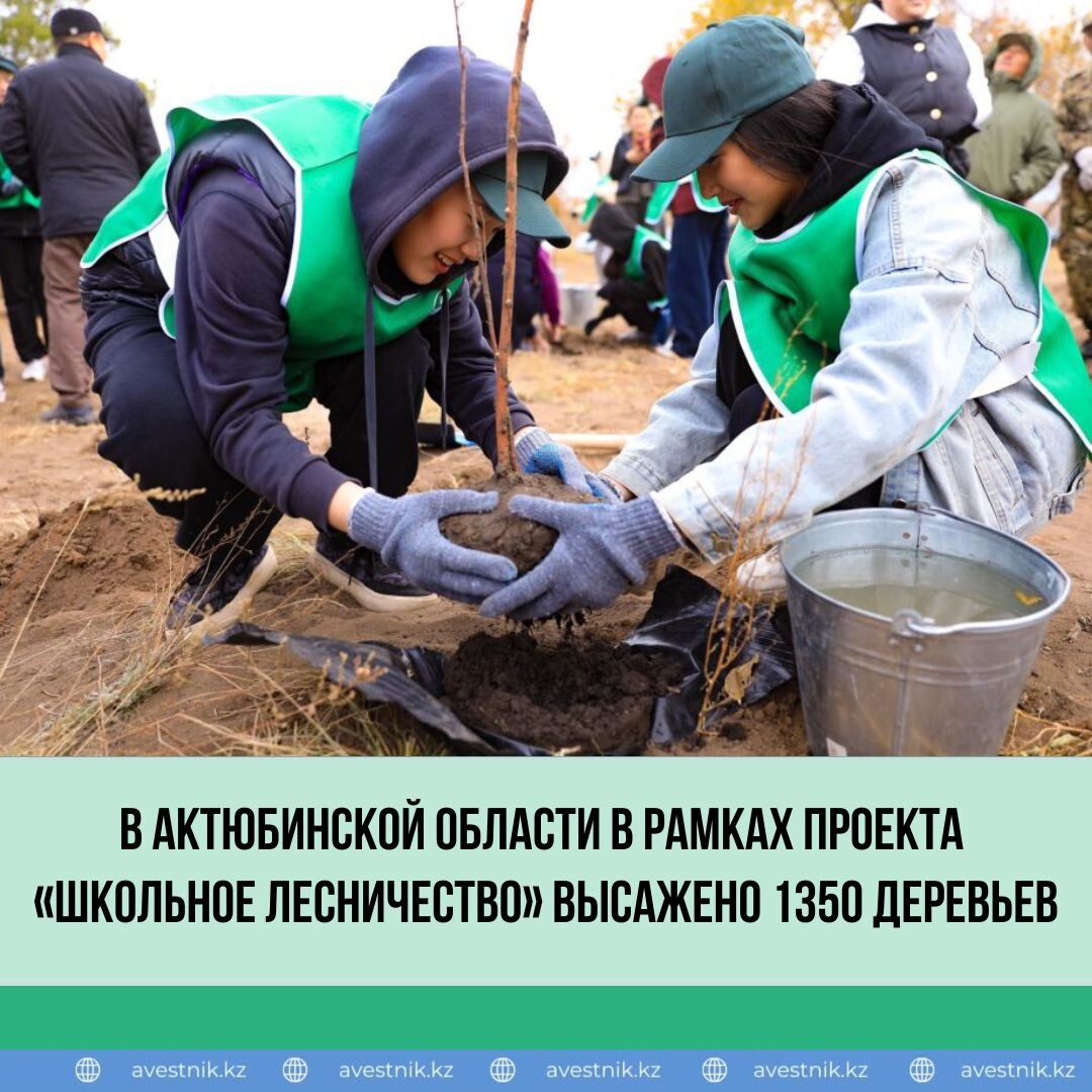 🌿 Проект, созвучный инициативе Президента страны, впервые стартовал в апреле текущего года именно в Актюбинской области и продолжает реализовываться в осенний период. Его цель – профориентация школьников в сфере лесного хозяйства и природопользования, формирование экологической культуры и развитие бережного отношения к родному краю. 🌳 Сегодня на территории лесных хозяйств области в рамках проекта «Школьное лесничество» было высажено 1350 деревьев. Аким области Асхат Шахаров вместе с учениками из Актобе принял активное участие в акции и лично посадил саженцы. 🗣️ «Проект „Школьное лесничество“ — важное мероприятие, проводимое в рамках республиканской экологической акции „Таза Қазақстан“, инициированной Президентом страны Касым-Жомартом Кемелевичем. С апреля этого года в проекте приняли участие более 400 школьников из города Актобе и ряда районов области, ими было высажено 850 деревьев. Сегодня мы уже видим результаты их труда — подросшие, распустившие листья деревья. Этот проект н