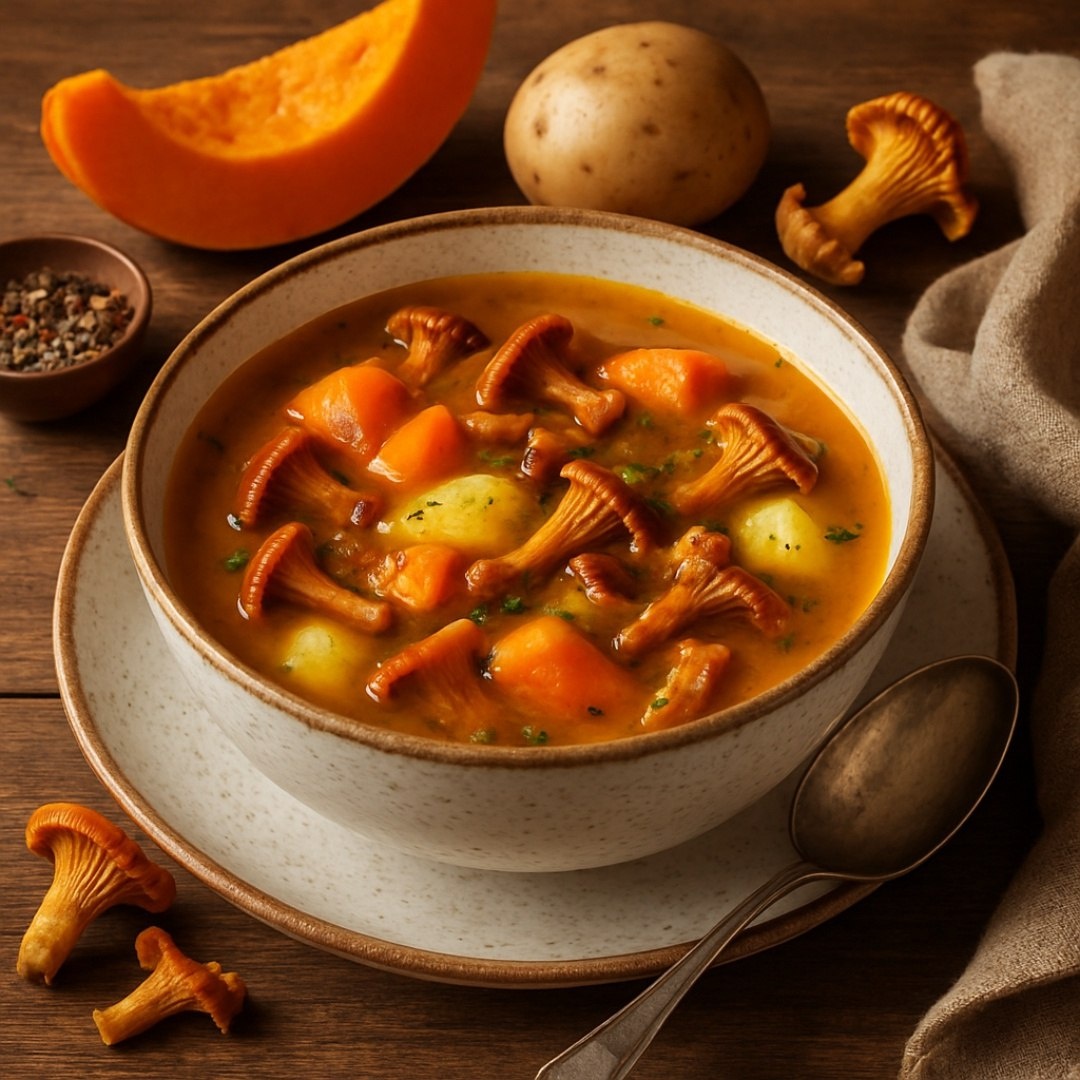 Суп с лисичками и тыквой