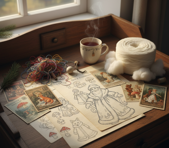 Прежде чем браться за работу, подумайте, какую игрушку вы хотите создать. Это может быть классический Дед Мороз или Снегурочка, забавный зверёк, ангелочек, грибок или даже персонаж из любимой сказки. Найдите вдохновение в старых открытках, иллюстрациях или просто позвольте разгуляться своему воображению.