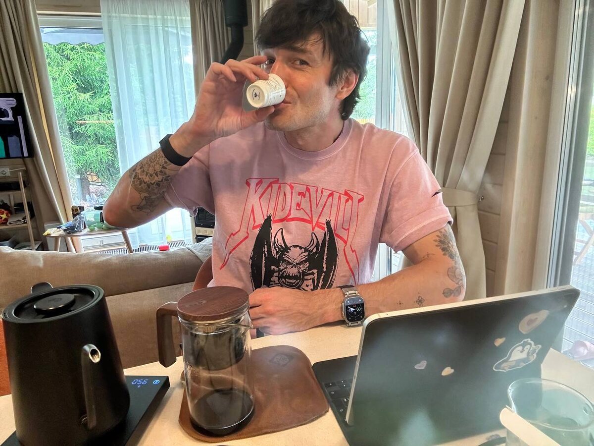 Максим Матвеев не представляет свой день без музыки 🎧и зеленого чая🍵, а на этом фото, он пьет чай пуэрэ 🫖