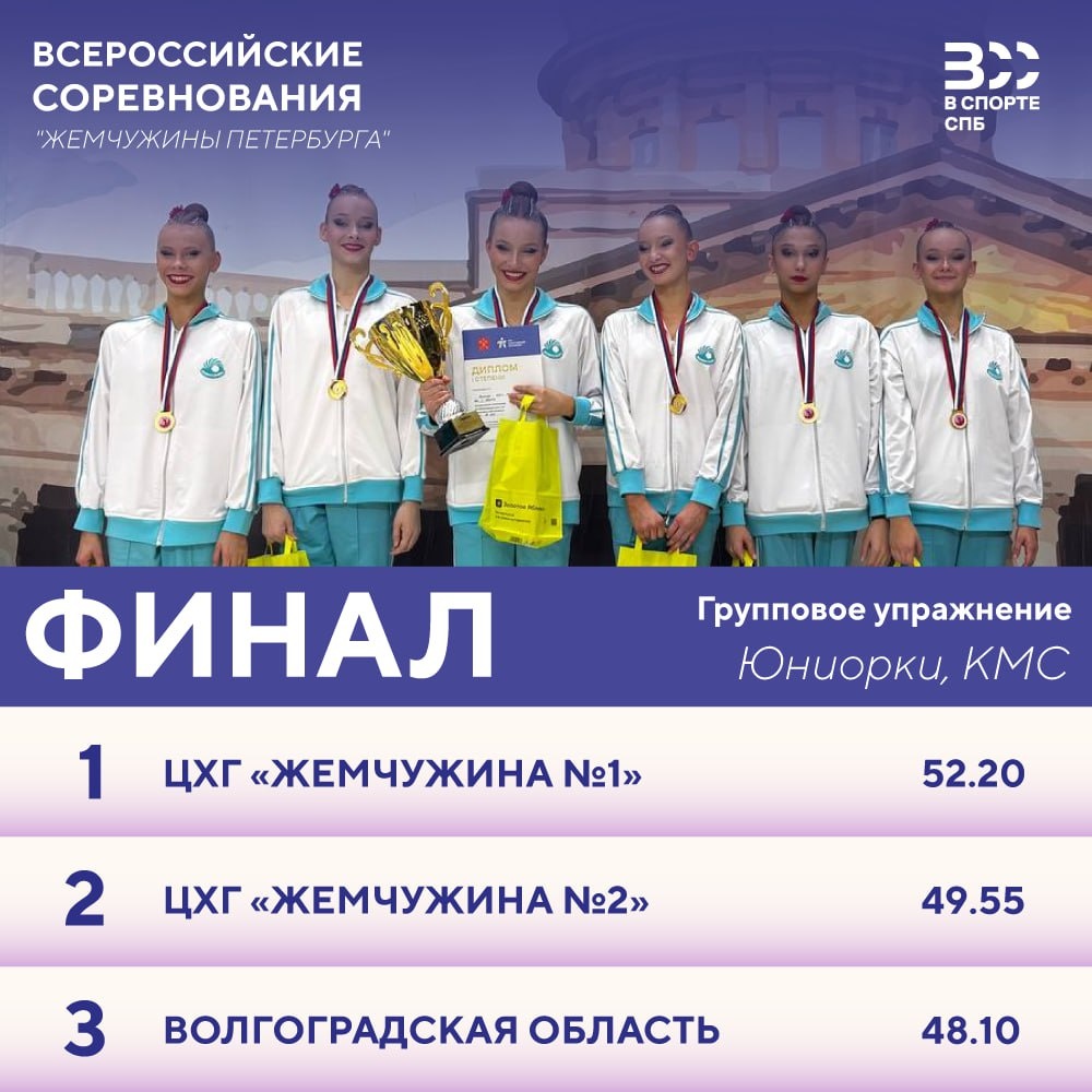 Результаты Всероссийских соревнований по художественной гимнастике «Жемчужины Санкт-Петербурга» в групповом упражнении-многоборье!