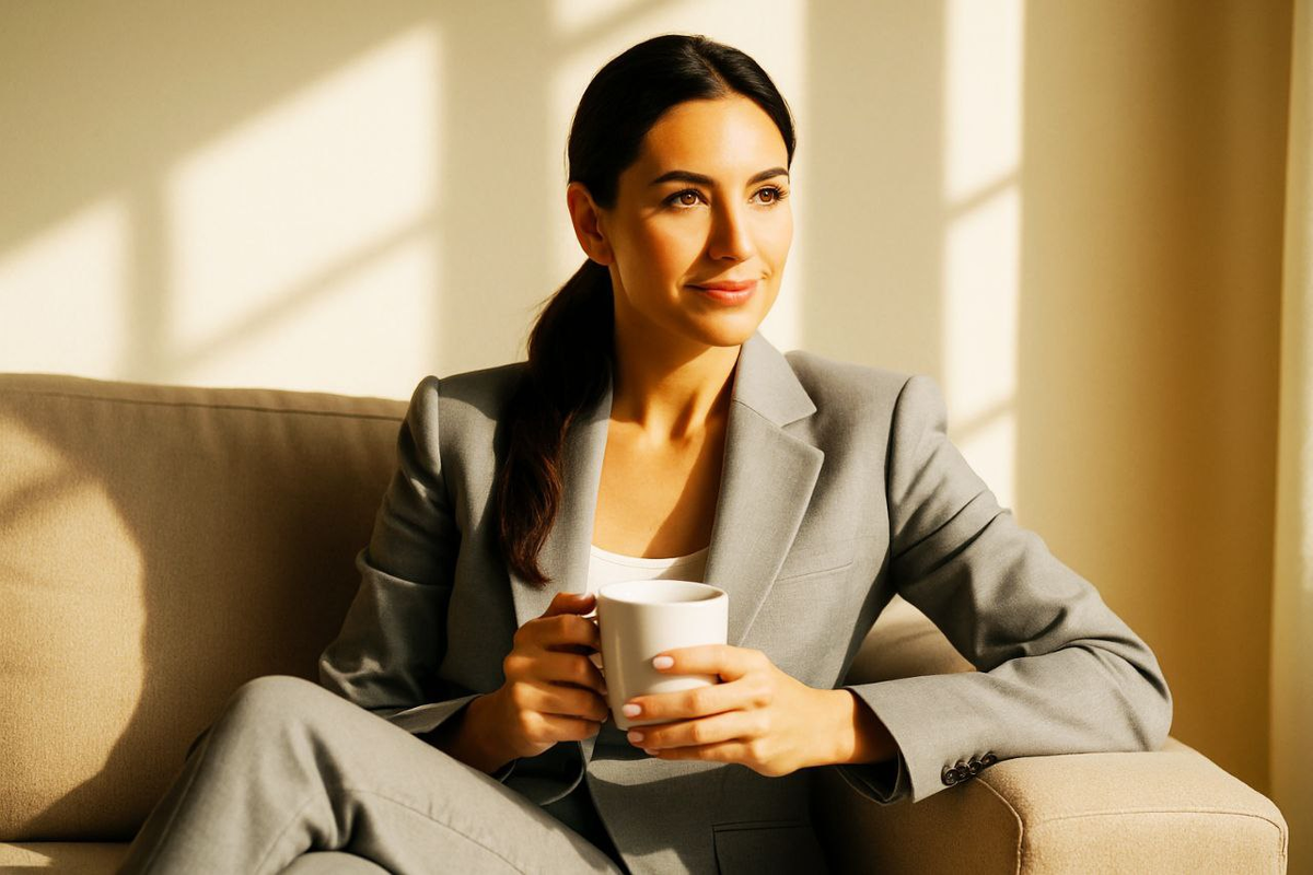 Она сидела на диване. На нашем диване, где мы с Андреем смотрели сериалы по пятницам, где я засыпала у него на плече. Женщина лет тридцати пяти, тёмные волосы собраны в низкий хвост, строгий серый костюм. Красивая. В руках — чашка с кофе. Моя любимая чашка, белая, с синими разводами.