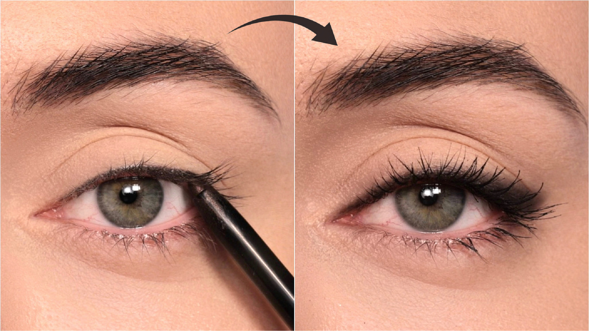 Добавляю ещё немного карандаша вдоль линии роста ресниц.