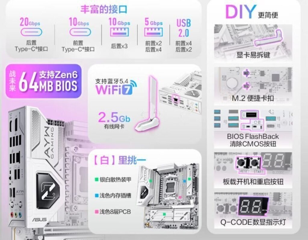 💻 AMD продолжит использовать сокет AM5 для своих новых процессоров на архитектуре Zen 6, несмотря на ожидаемое увеличение количества ядер. Это отличная новость для тех, кто уже инвестировал в платформу AM5, ведь обновление процессора не потребует замены материнской платы. Хотя официального подтверждения от AMD пока не было, компания Asus практически подтвердила эту информацию в своих рекламных материалах. В них упоминается материнская плата на чипсете B850M, которая уже «готова к Zen 6» и оснащена BIOS объёмом 64 МБ — это говорит о поддержке новых процессоров и улучшенной функциональности. Новые процессоры AMD на базе Zen 6 ожидаются в следующем году, скорее всего, во второй половине 2024-го. В это же время на рынок выйдут конкурирующие процессоры Intel Nova Lake, но для них потребуется новый сокет, что может повлечь за собой необходимость замены материнской платы. Таким образом, пользователи платформы AM5 могут рассчитывать на долгосрочную поддержку и возможность обновления без до