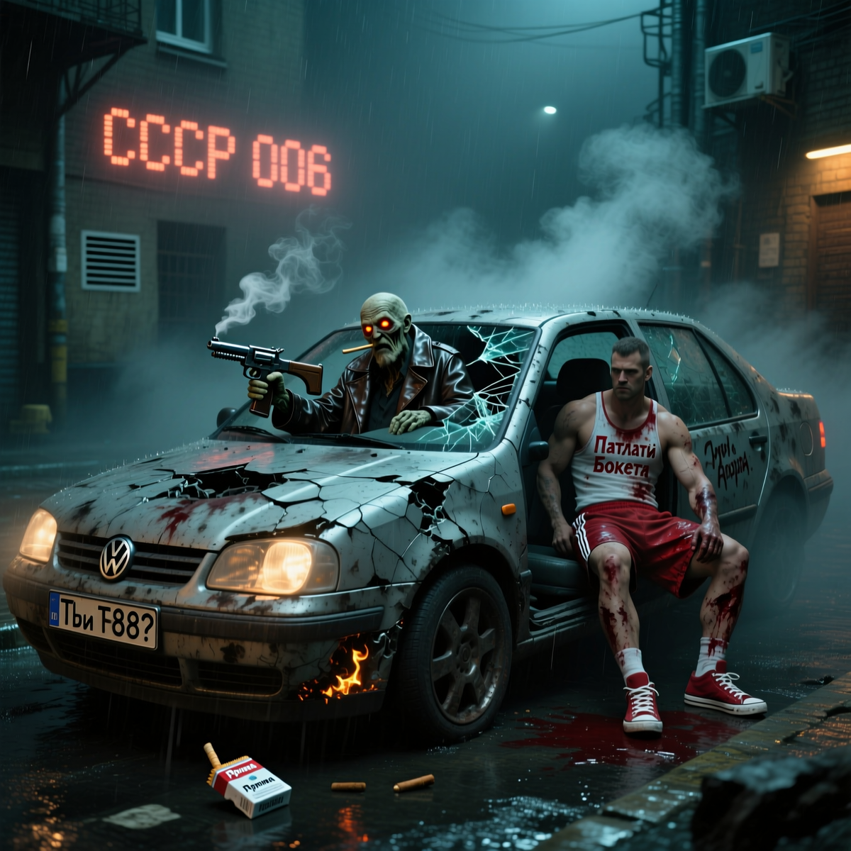 DDO-006 – "Кошмар Дядюшки К." Класс объекта: Пепельница (Агрессивная/Нестабильная) --- Описание: DDO-006 – аномальный автомобиль, внешне напоминающий Volkswagen Jetta 2007 года выпуска, покрытый слоем смолы и пепла. Основные аномальные свойства: - Отсутствие номерных знаков (иногда мелькают цифры "СССР 006", но зафиксировать их невозможно) - Постоянный дым из всех щелей, запах – смесь дешёвого табака, конопли и чего-то химически-сладкого - Самостоятельное перемещение – может фантомно появляться в любой точке города, включая закрытые помещения - Любит гонки – обгоняет машины на трассах, "шашкует" и провоцирует ДТП, но никогда не попадает в аварии сам Обитатели: 1. Дядюшка К. - Внешность: Мумифицированный курильщик в прожжённом кожаном пальто, с лицом, напоминающим пережаренный бифштекс - Вооружение: Монтировка "Дуболом-88" (по слухам, сделана из шатуна "Жигулей") - Поведение: - Агрессивен к некурящим, трезвенникам и тем, кто "не в теме" - Любит