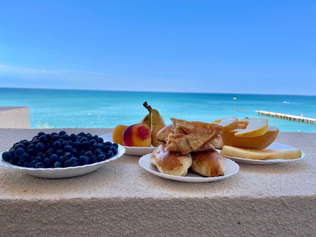 …Выходим на лоджию, опять красный флаг, а на на море тишь да гладь. Понятно, к обеду спасатели поменяют на желтый, а может и нет). В этот раз мы расположились как раз под этим красным флагом, не помню чтобы его меняли. От спасательной будки очень хорошая площадь тени, вот решили сегодня расположиться здесь. Тело все ещё горит, кожа начала местами немного облезть. Все прелести загара! От солнышка мы всегда прятались, но прячься ни прячься, оно все равно тебя найдет. И крутится оно очень быстро. После каждого заплыва, приходилось двигать лежанку, выходишь, а тени совсем над ней нет. Море теперь каждый день прозрачное, мутное было только в первые два дня, как мы приехали. Колхозный рынок нас выручал, дома нас ждали ягоды, персики, груши и наивкуснейшая дыня. А из кафе «Молочное» наивкуснейшая выпечка. …На ужин мы поехали в это кафе, а после пошли гулять в центр «Малого Иерусалима», где на узких улочках, переплетаются культуры разных народов, создавая неповторимую атмосферу. Но, медл