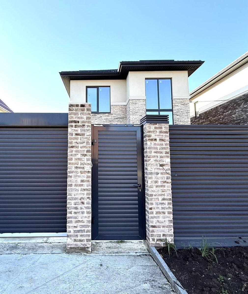 🔥🔥В ПРОДАЖЕ! 🏡Новый коттедж со всеми коммуникациями в отличной локации жизни в собственном доме в Краснодаре — микрорайон Сады Калинина/Ближний Западный обход 📍Дом расположен в районе улицы Троицкой. ❗️Улица тупиковая, тихая, подъездные пути полностью асфальтированная дорога. Район обжитой, все соседние дома заселены. ◾️Дом возведен в современном архитектурном стиле по индивидуальному проекту полностью из кирпича. ◾️Ленточный фундамент, внутренние стены — забутовочный кирпич, наружные — ригель ручной формовки Tonstein +декоративная штукатурка Ceresit с соблюдением всех строительных норм. Металлопластиковые панорамные энергосберегающие окна с внешней ламинацией, кровля — металлочерепица, качественная входная дверь с терморазрывом. ◾️Дом общей площадью 150 кв.м продуманной комфортной для проживания планировки: прихожая, холл, гостевая спальня с окнами в пол, санузел, кухня-гостиная 30 кв.м с выходом на задний двор, лестница на второй этаж монолитная — на первом этаже. ◾️Втор